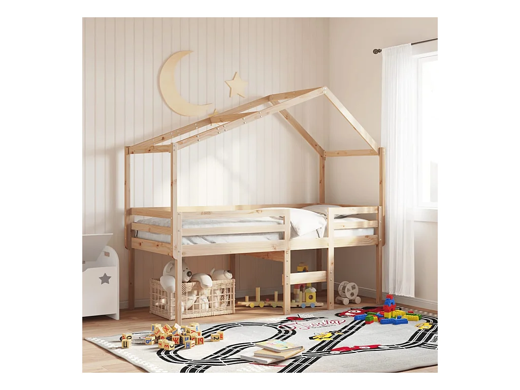 Lit haut avec toit 90x200 cm bois de pin massif FR27622