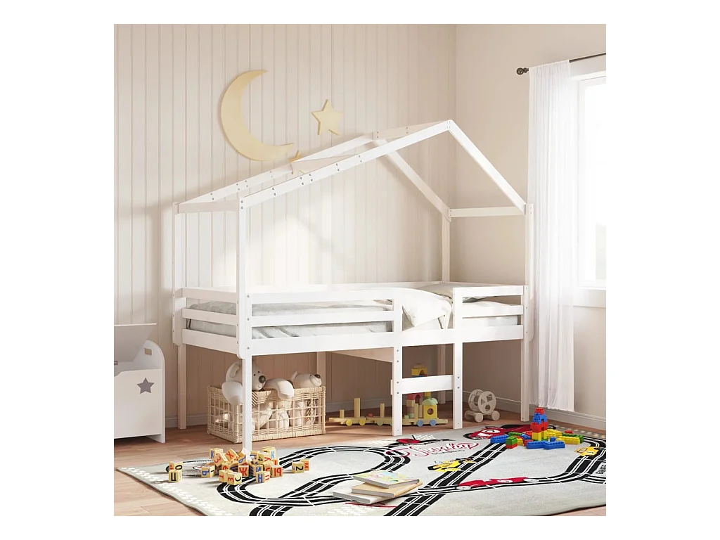 Lit haut avec toit blanc 75x190 cm bois de pin massif FR83162