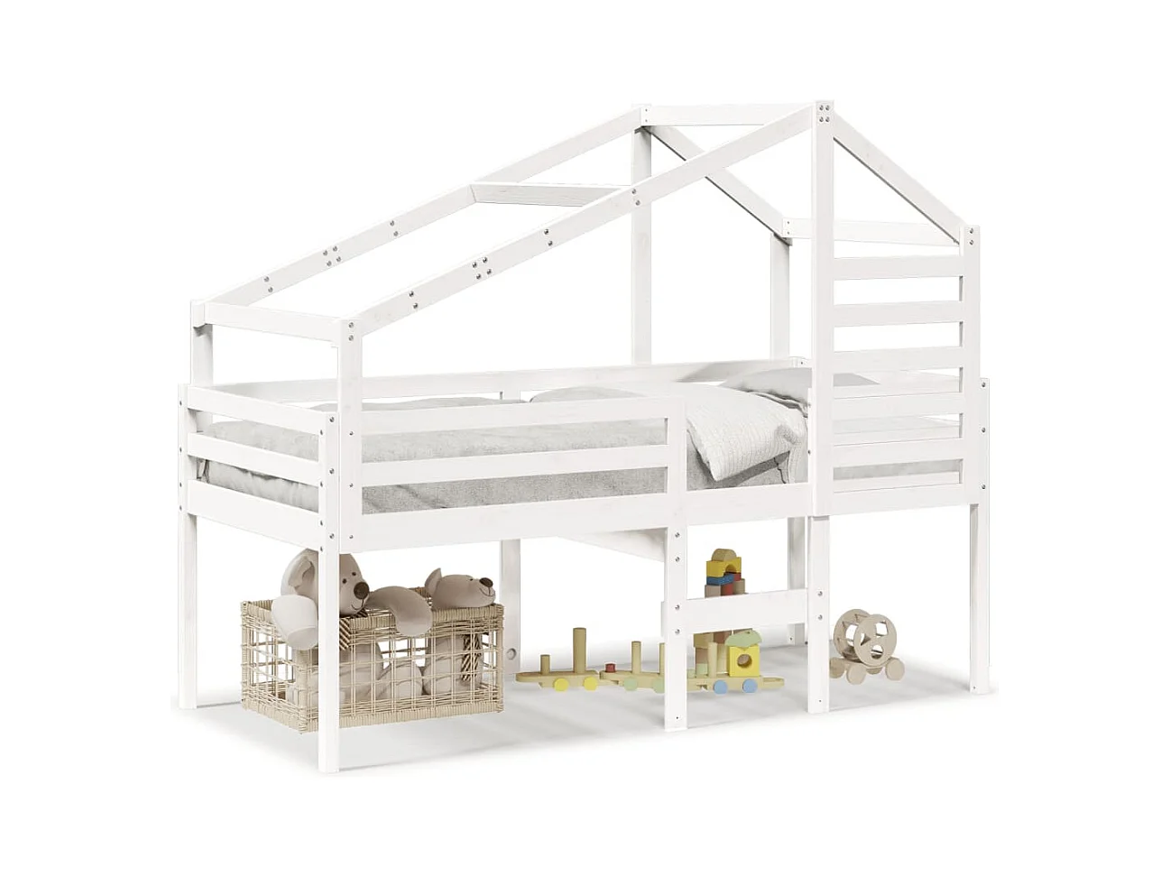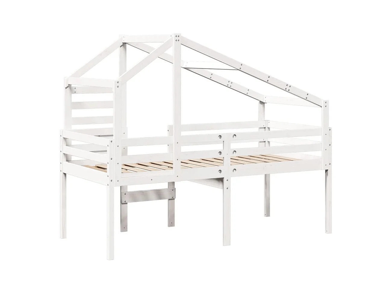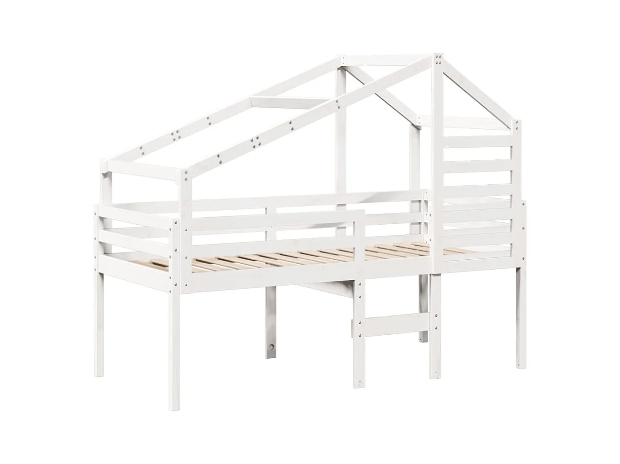 Lit haut avec toit blanc 80x200 cm bois de pin massif