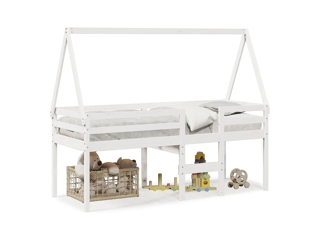 Lit haut avec toit blanc 80x200 cm bois de pin massif FR64468