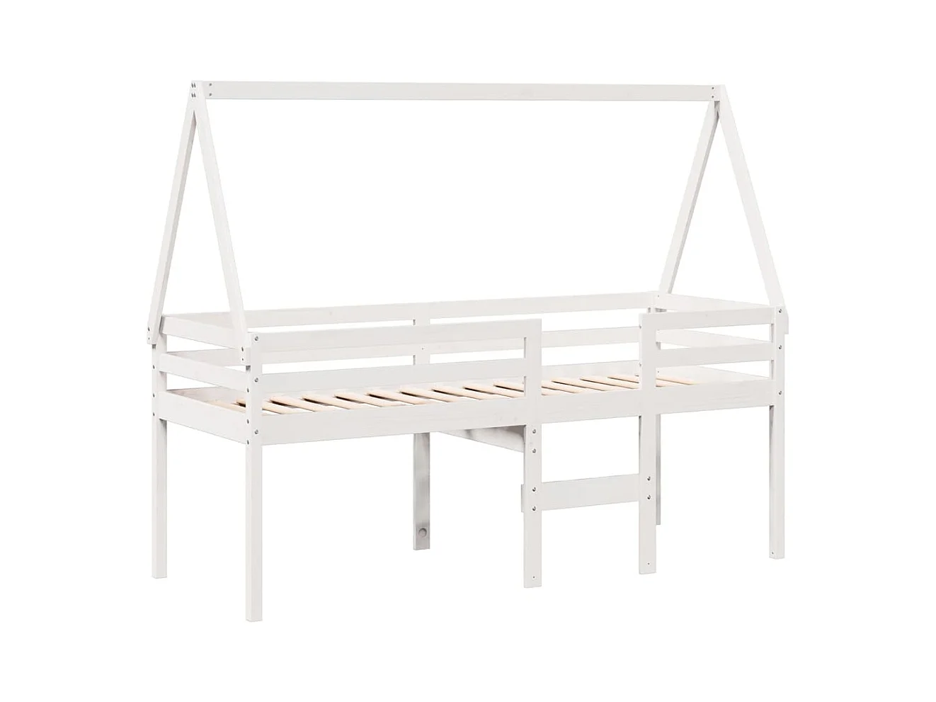 Lit haut avec toit blanc 90x200 cm bois de pin massif