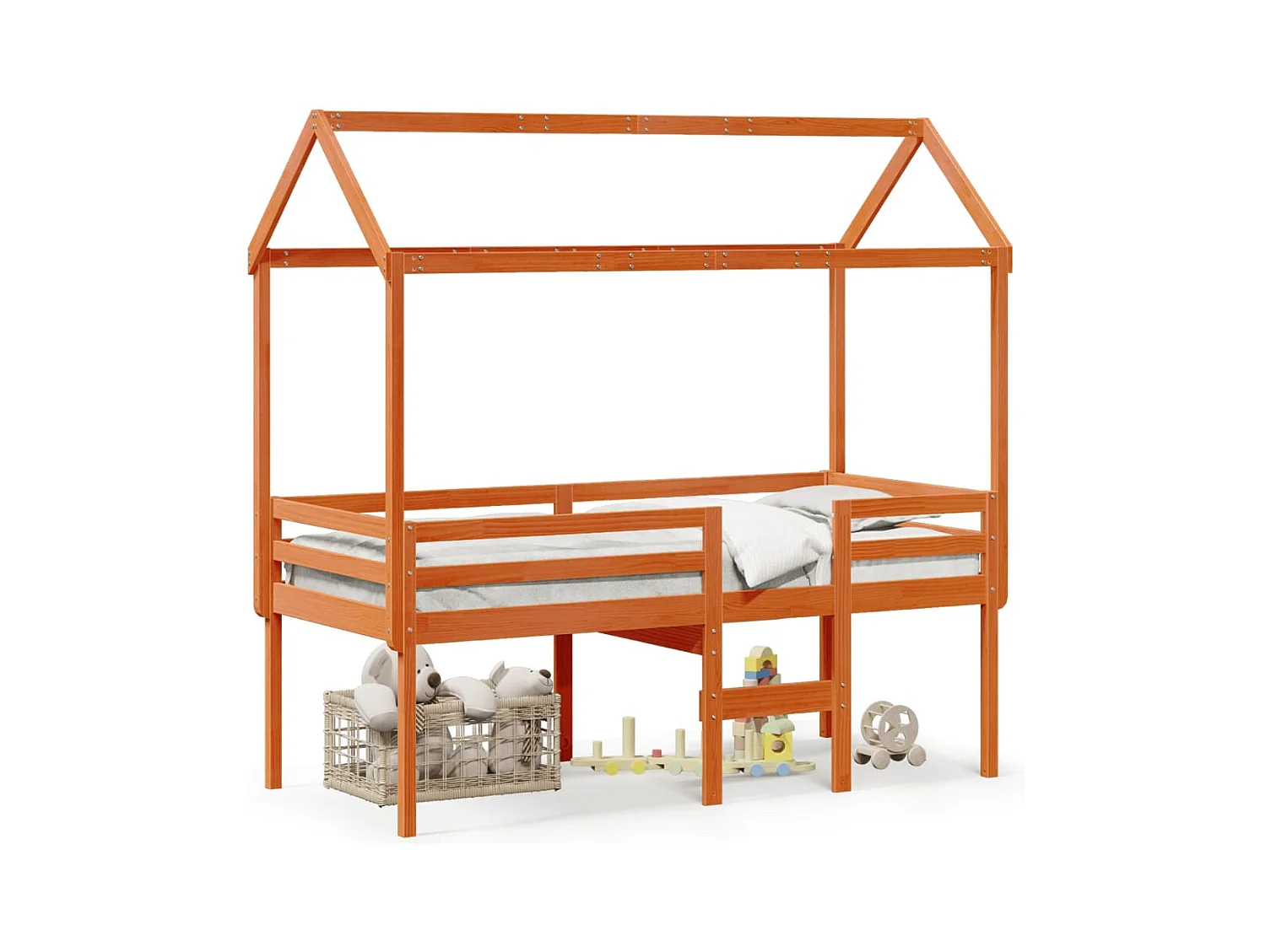 Lit haut avec toit cire marron 75x190 cm bois de pin massif FR26730