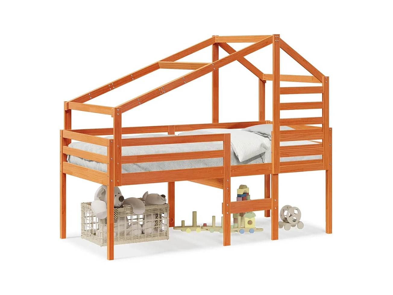 Lit haut avec toit cire marron 80x200 cm bois de pin massif FR46249