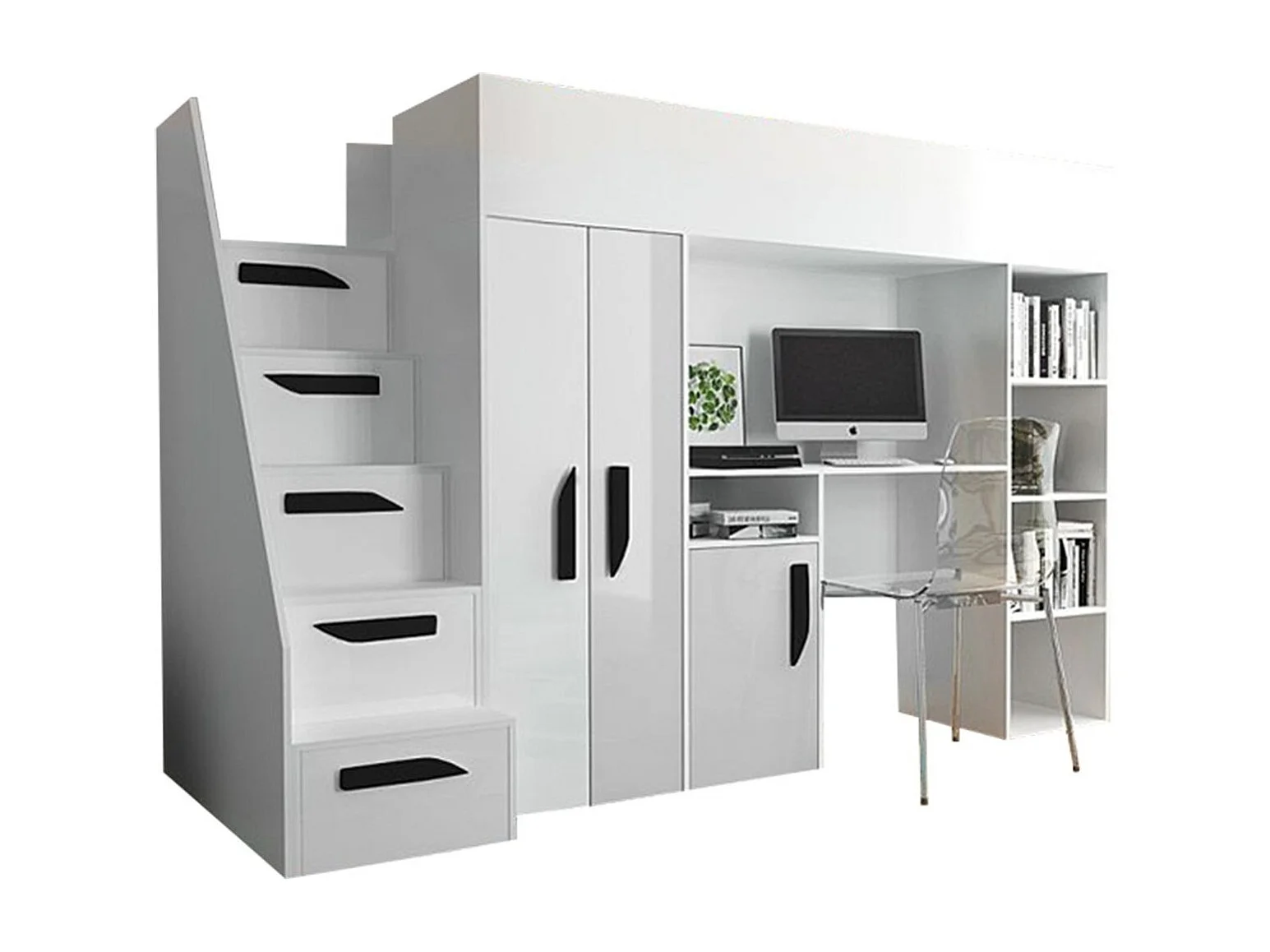 Lit haut Hartford 192, Unique, Blanc, 90x200, Stratifié, Sommier à lattes, 120x247x166cm