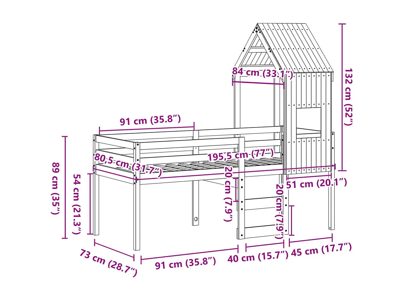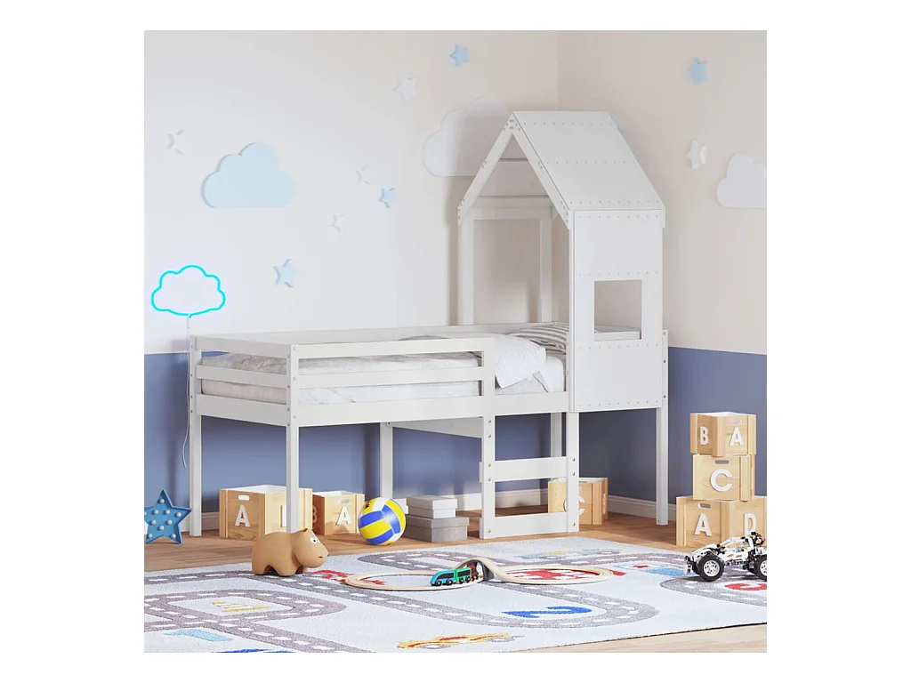 Lit haut sans matelas blanc 75x190 cm bois de pin massif