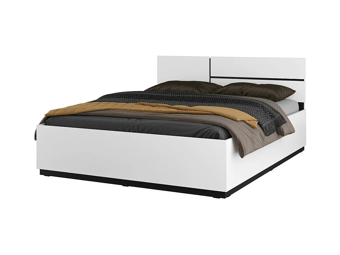 Lit HAVANA 160x200 blanc et noir avec sommier – Design moderne et confort optimisé