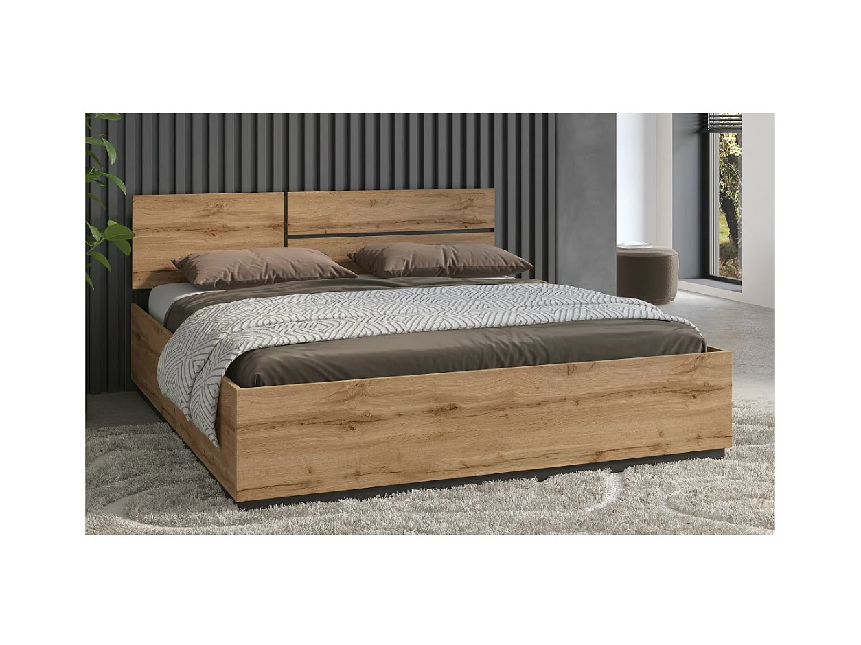 Lit HAVANA 180x200 chêne et noir avec sommier – Style naturel et couchage grand confort