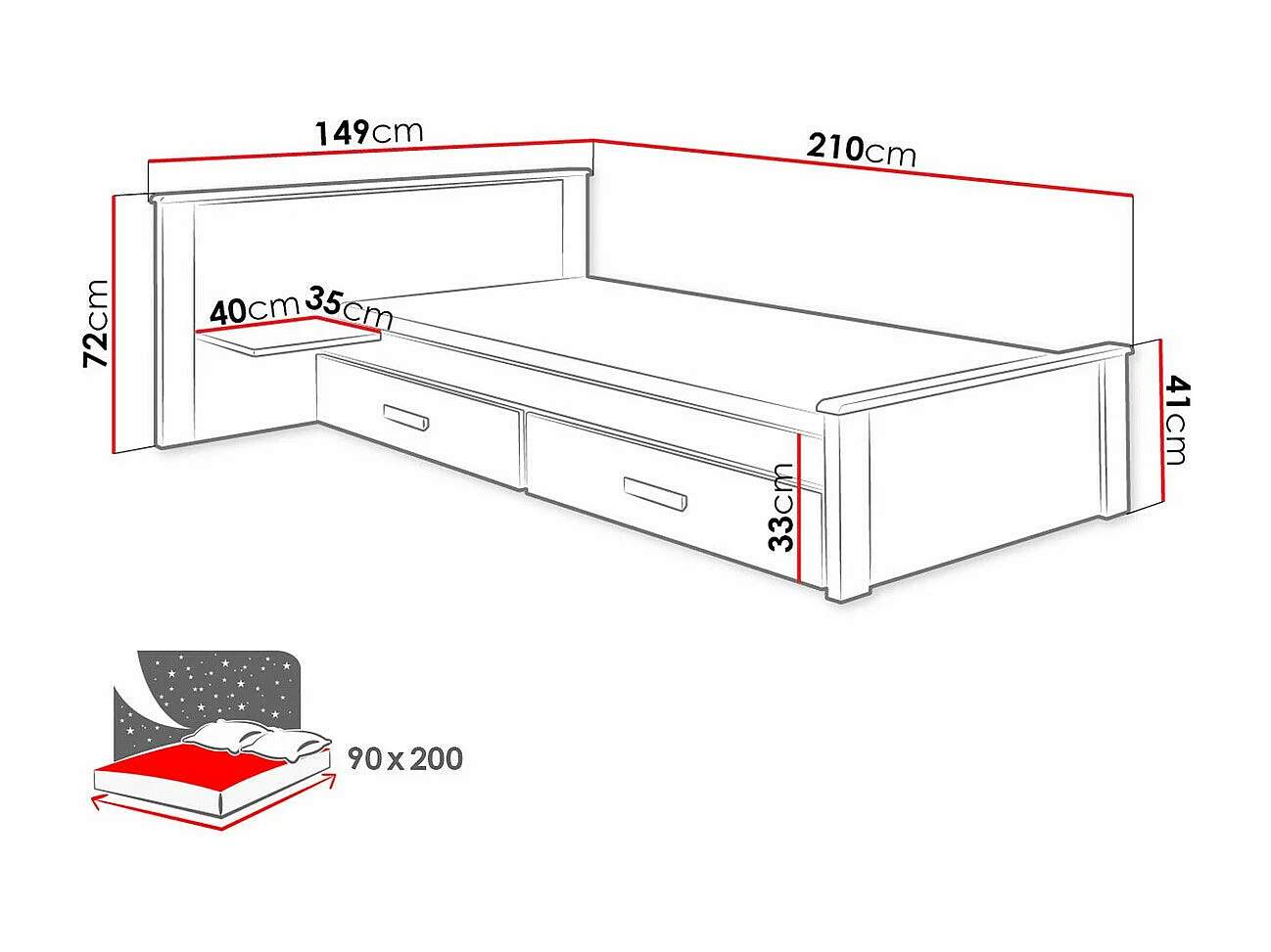 Lit Henderson 118, Unique, Bleu, 90x200, Stratifié, Disponible, 149x210x72cm