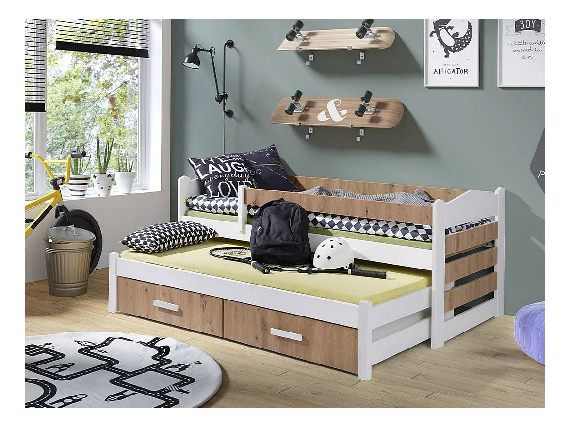 Lit Henderson 140, Simple avec un lit gigogne supplémentaire, Brun clair, 90x190|90x200,