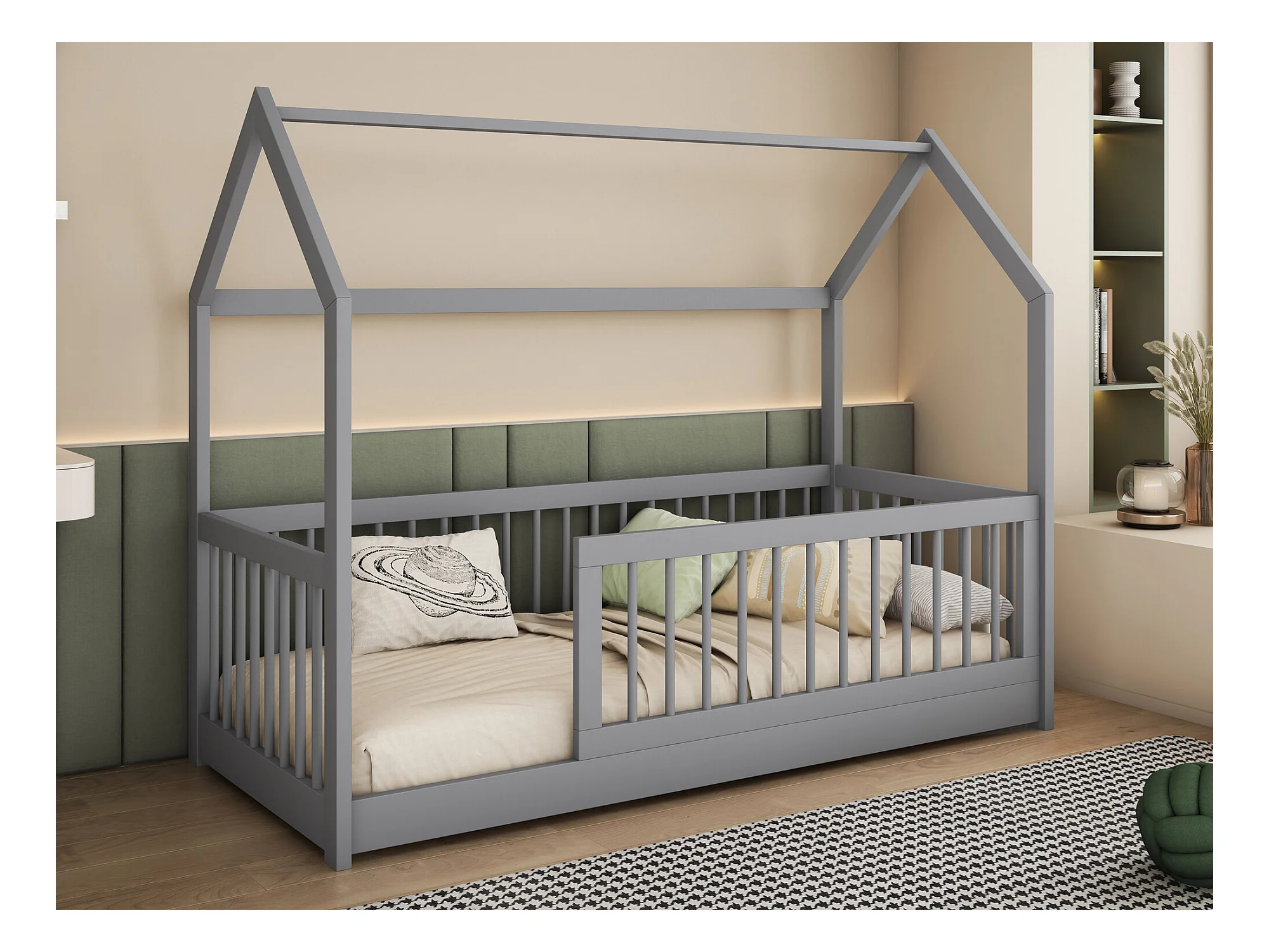 Lit Henderson 168, Unique, Gris, 90x200, Bois, Sommier à lattes, 97x206x155cm