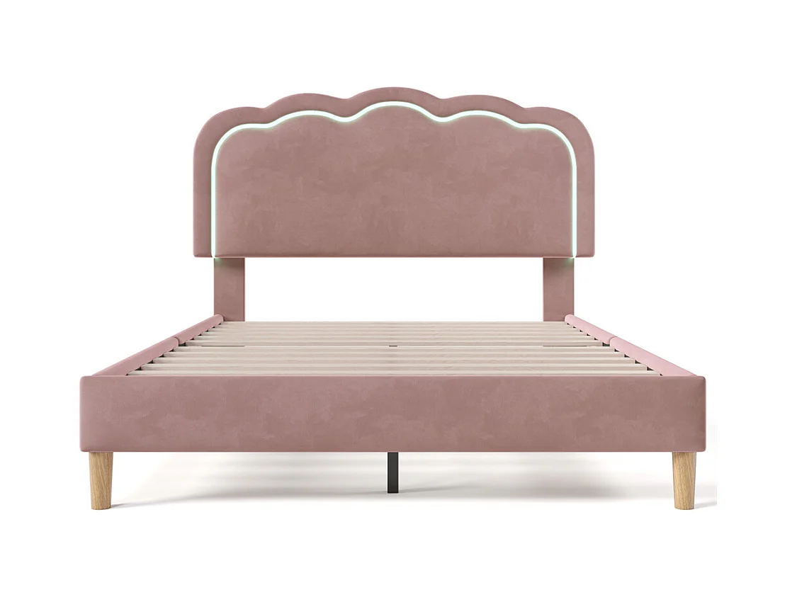 Lit jeune lit 140x200 cm lit lattes de bois lit rembourré lit led double velours rose