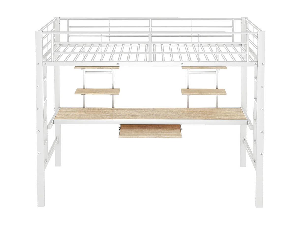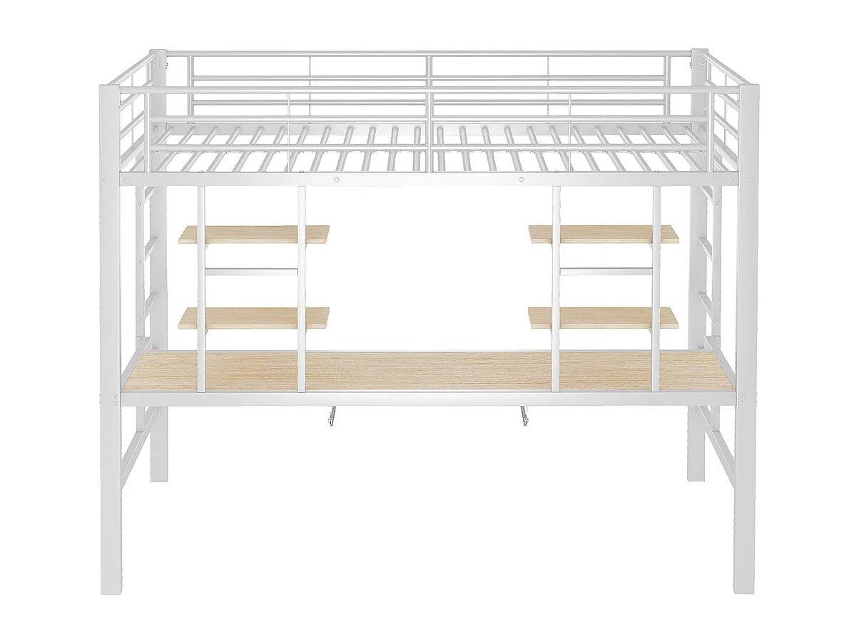 Lit jeune lit 90x200 cm lit en métal lit en fer lit superposé avec bureau et deux bibliothèques lit simple métal blanc