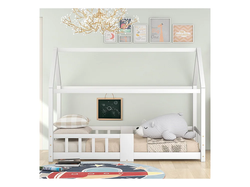 lit simple, 90 x 200 cm, cadre de lit, protection antichute,blanc, sans matelas