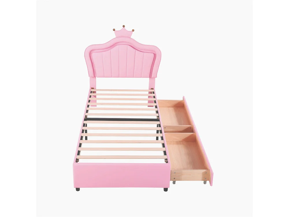 Lit jeune lit 90x200 cm lit rembourré avec tiroirs de rangement lit simple avec lampes led et sommier à lattes cuir pu rose