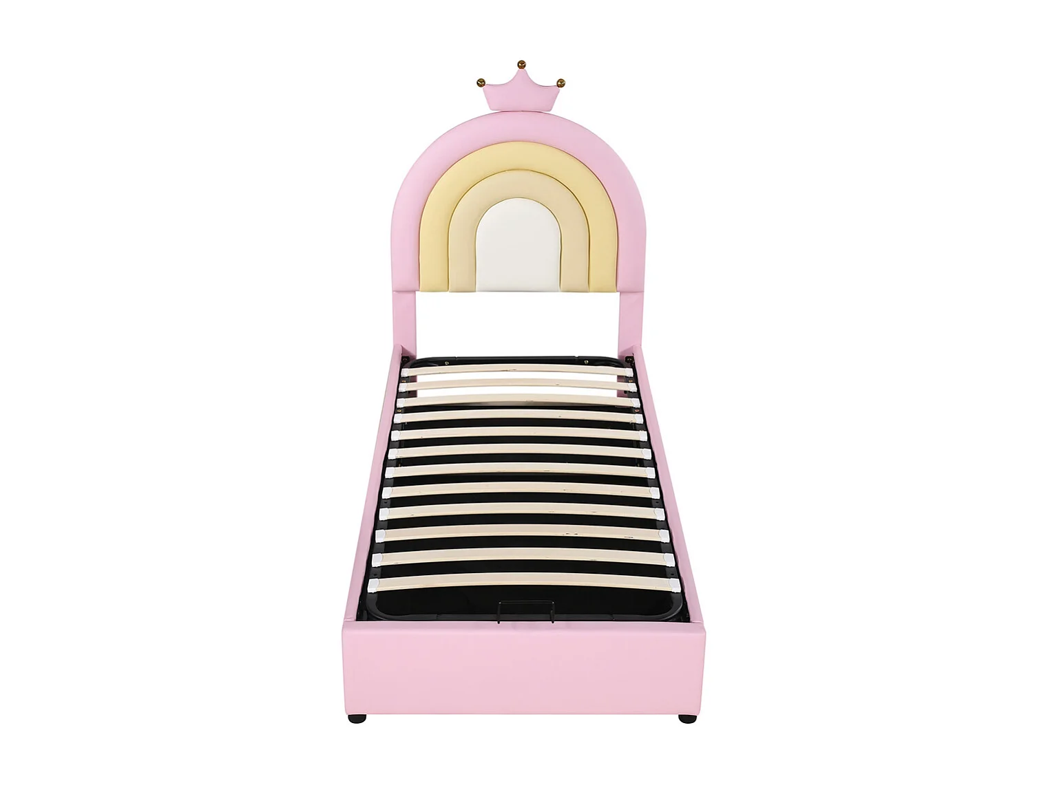 Lit jeune lit 90x200 cm lit rembourré hydraulique lit simple avec sommier à lattes pu rose