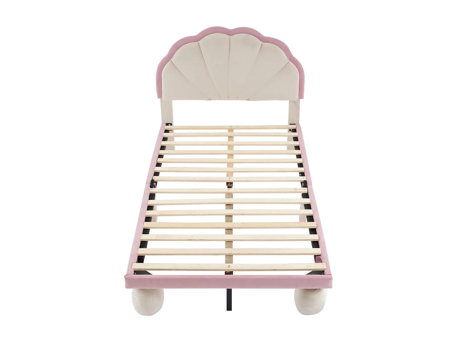 Lit jeune lit 90x200 cm lit rembourré lit bande lumineuse led lit pieds ronds rembourrés lit lattes de bois lit simple velours beige+rose