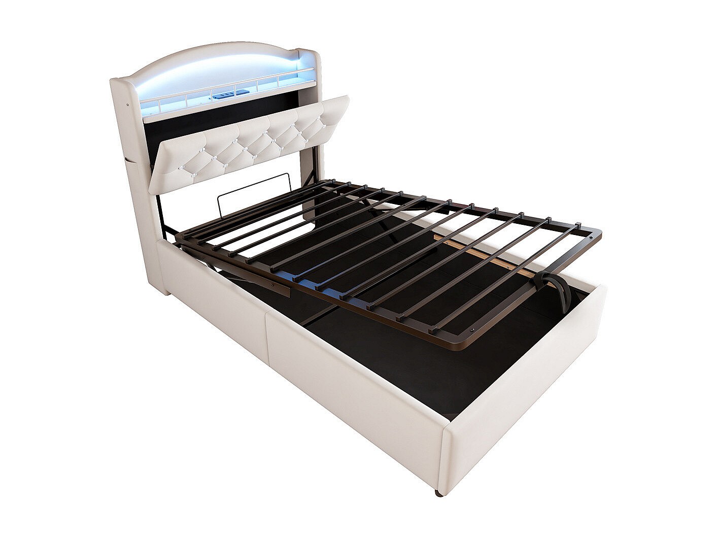 Lit jeune lit 90x200cm lit rembourré lit de rangement lit simple tissu beige