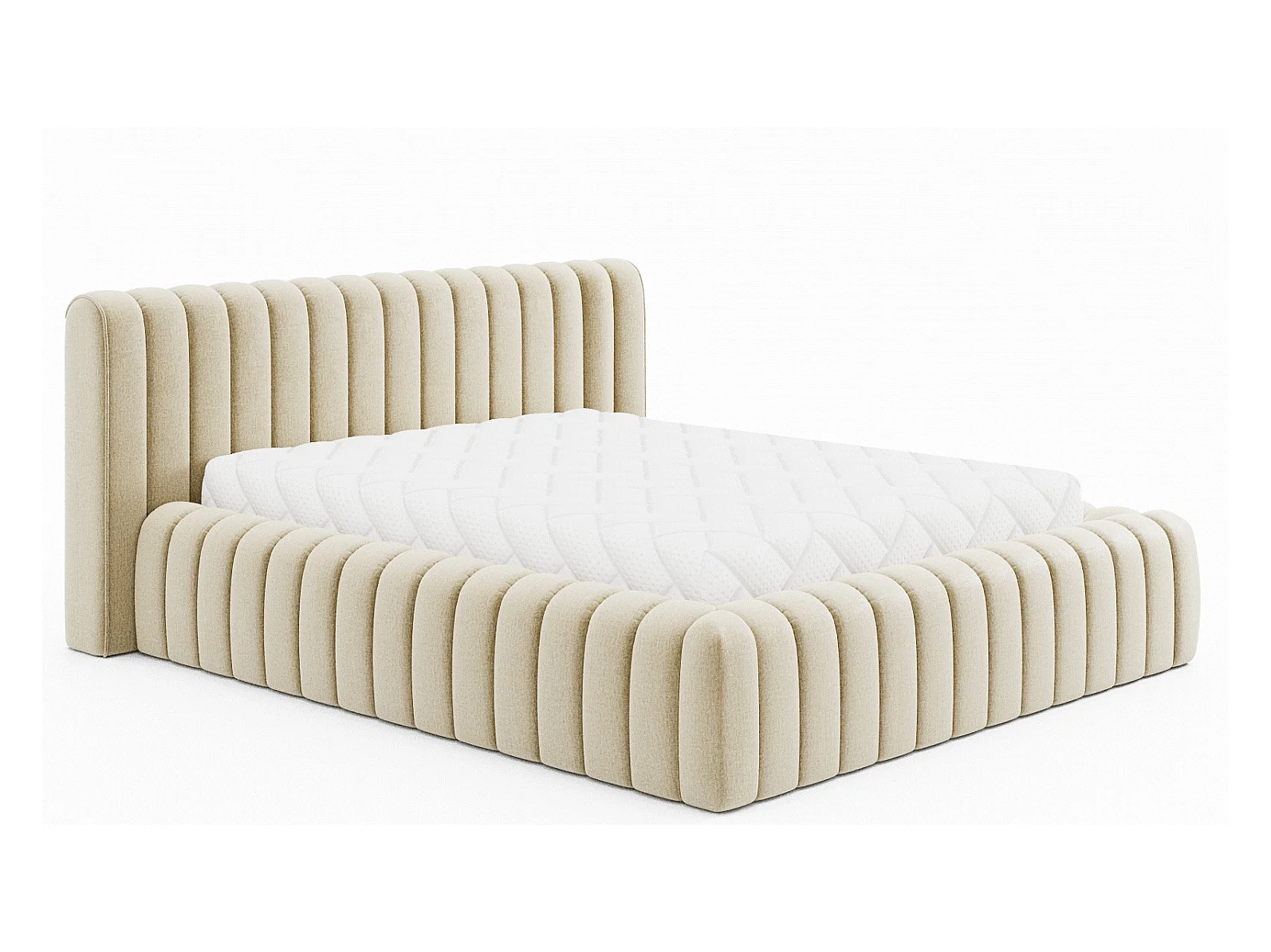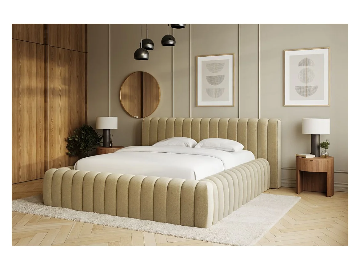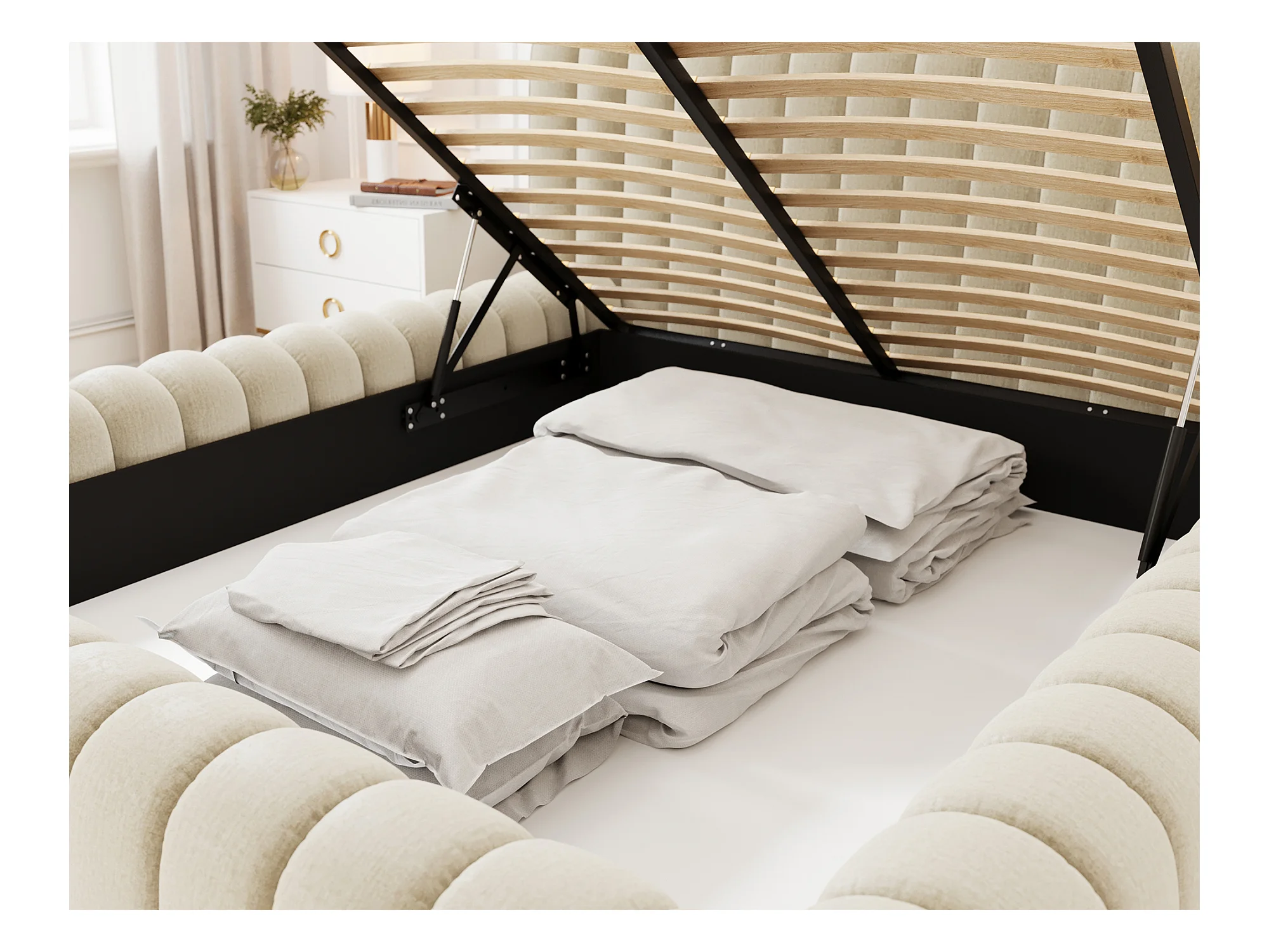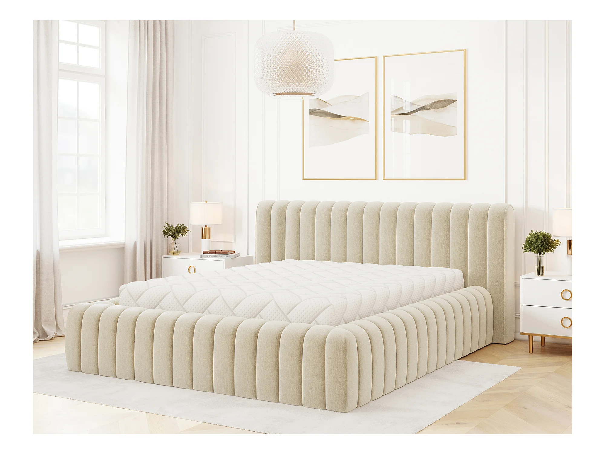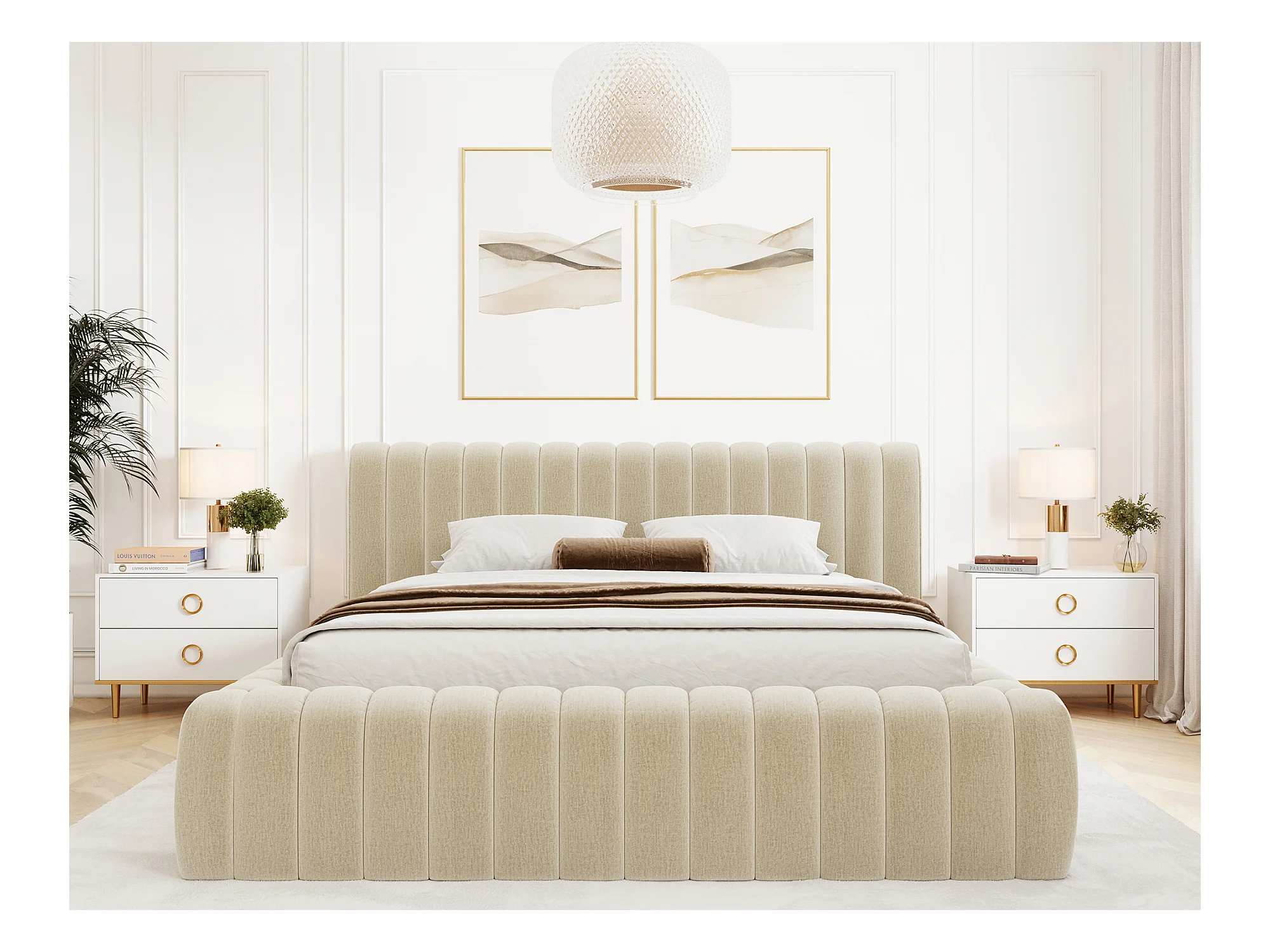 Lit coffre Madera prestige – Revêtement tissu tapissé-Couleur Beige clair-180x200