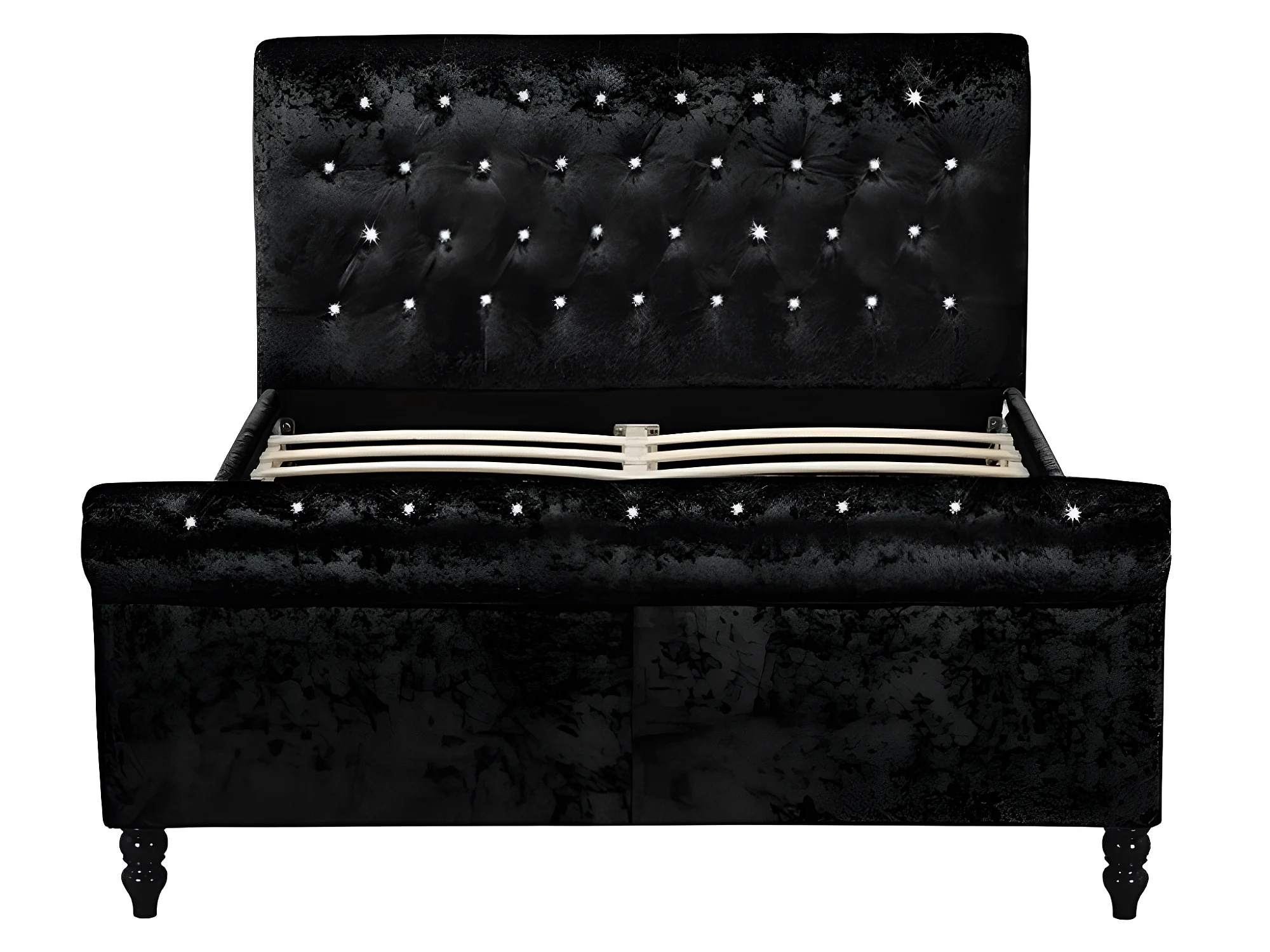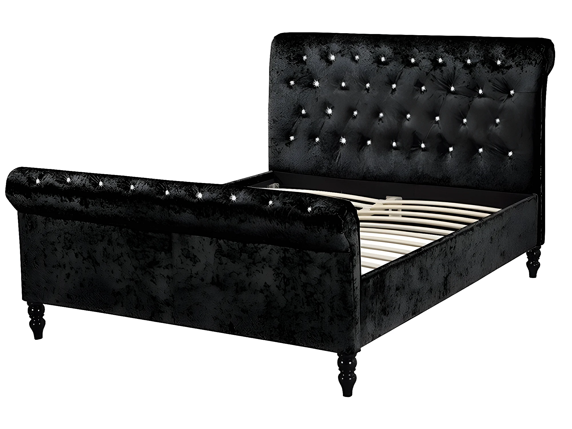 Lit KAPALDI Luxe Velours - Tissu Noir - 140x190 cm