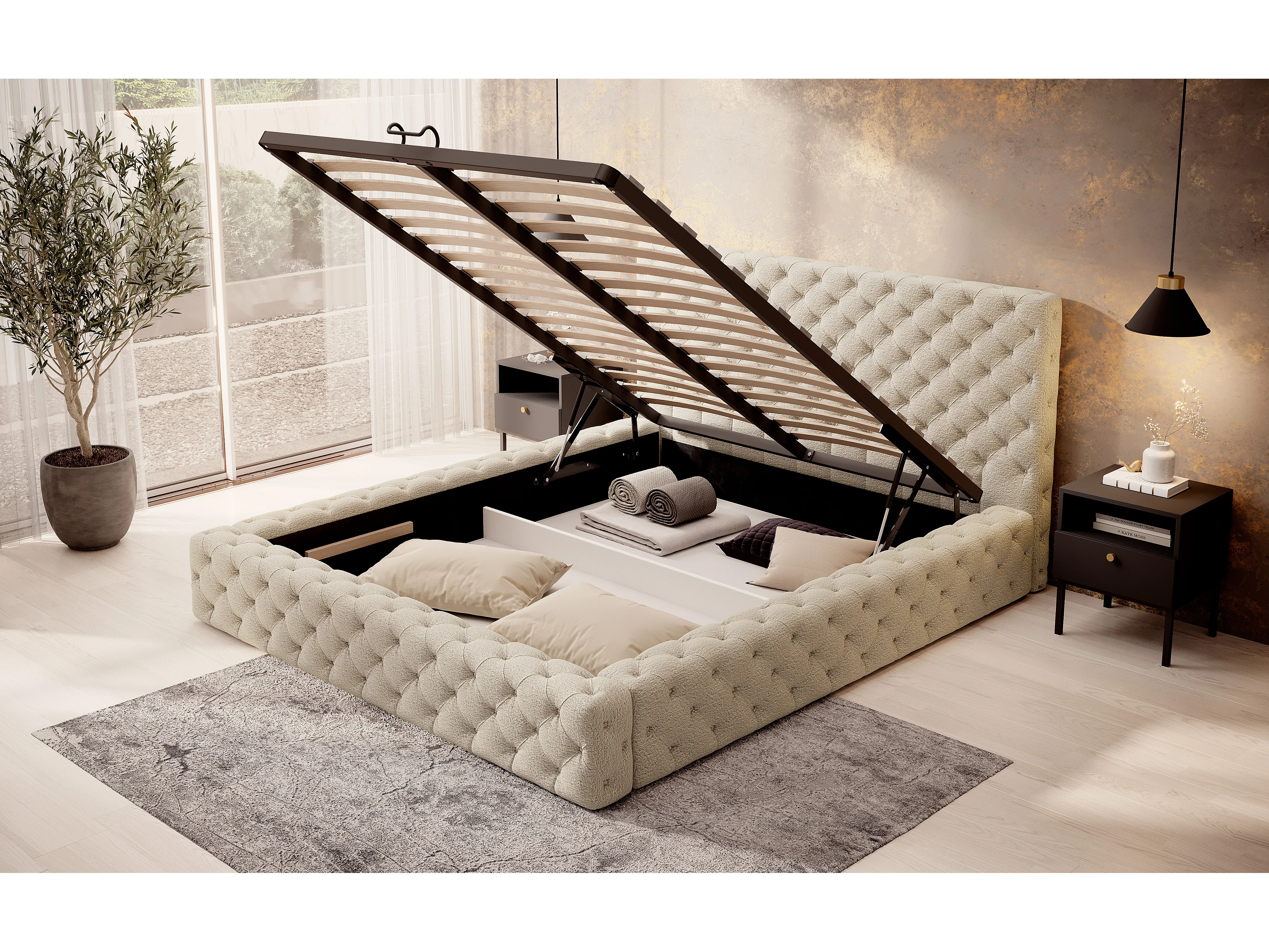 Lit King S (140x200)/Tissu-Beige
