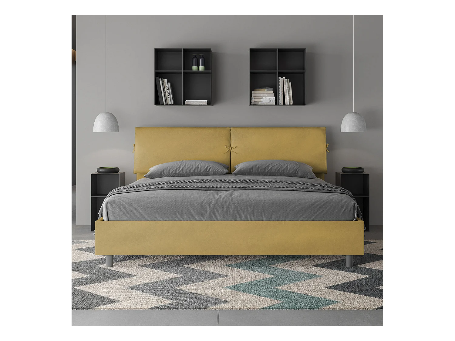 Lit king size avec sommier rembourré 180x200 microfibre ocre Mados