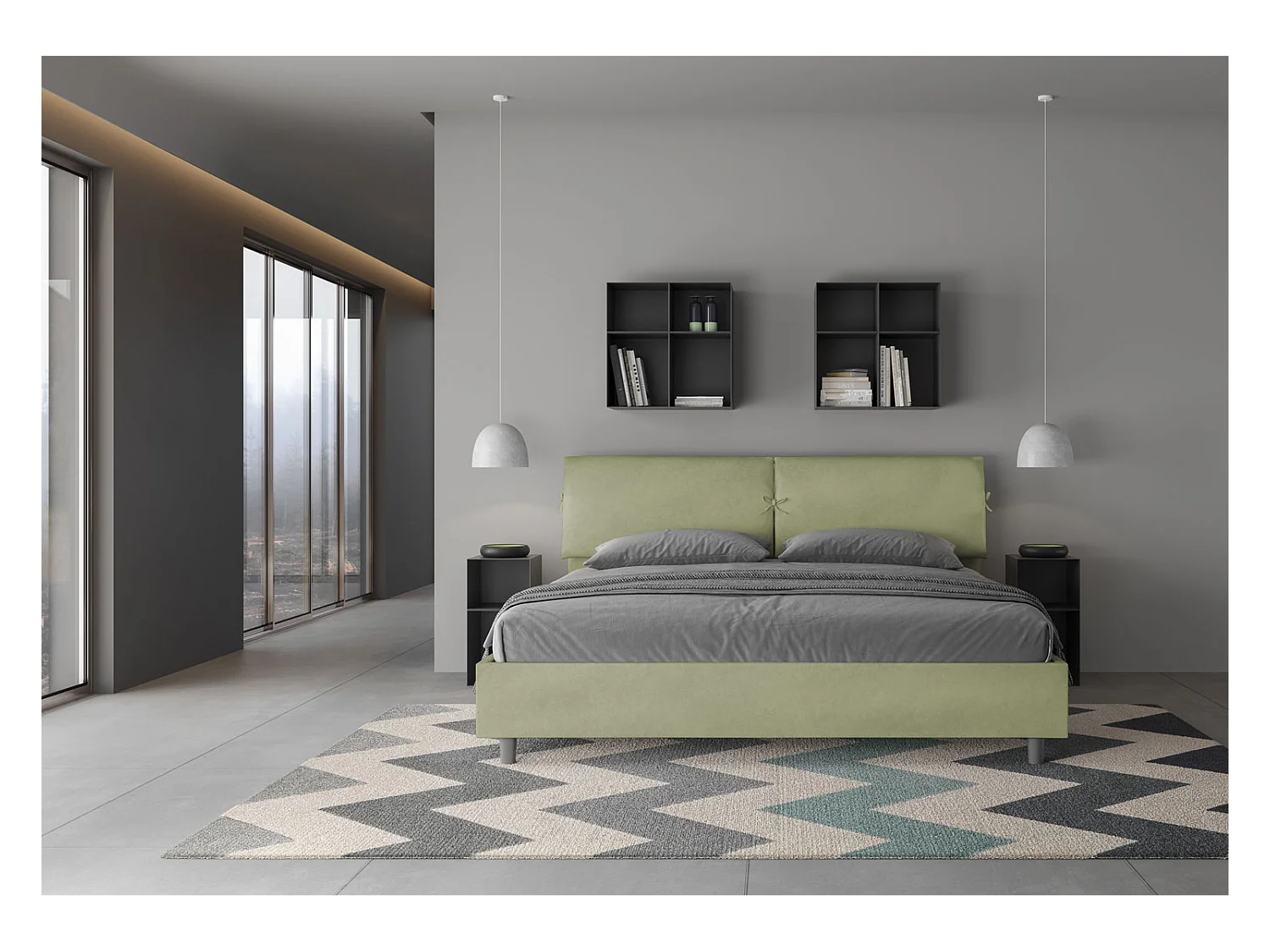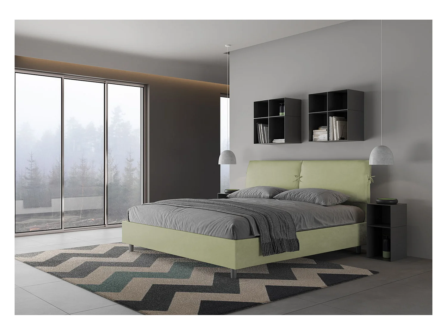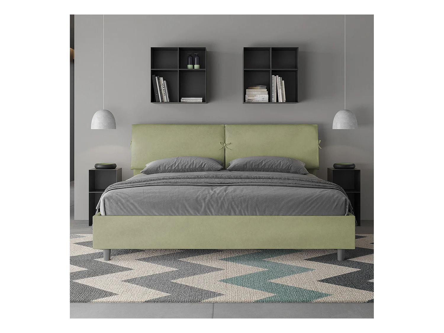 Lit king size avec sommier rembourré 180x200 microfibre vert Mados
