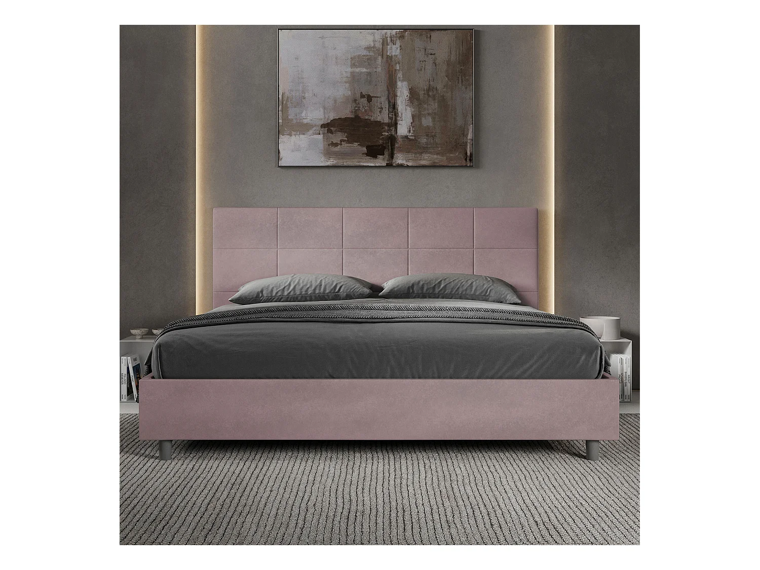 Lit king size avec sommier rembourré 200x200 microfibre lilas Mika