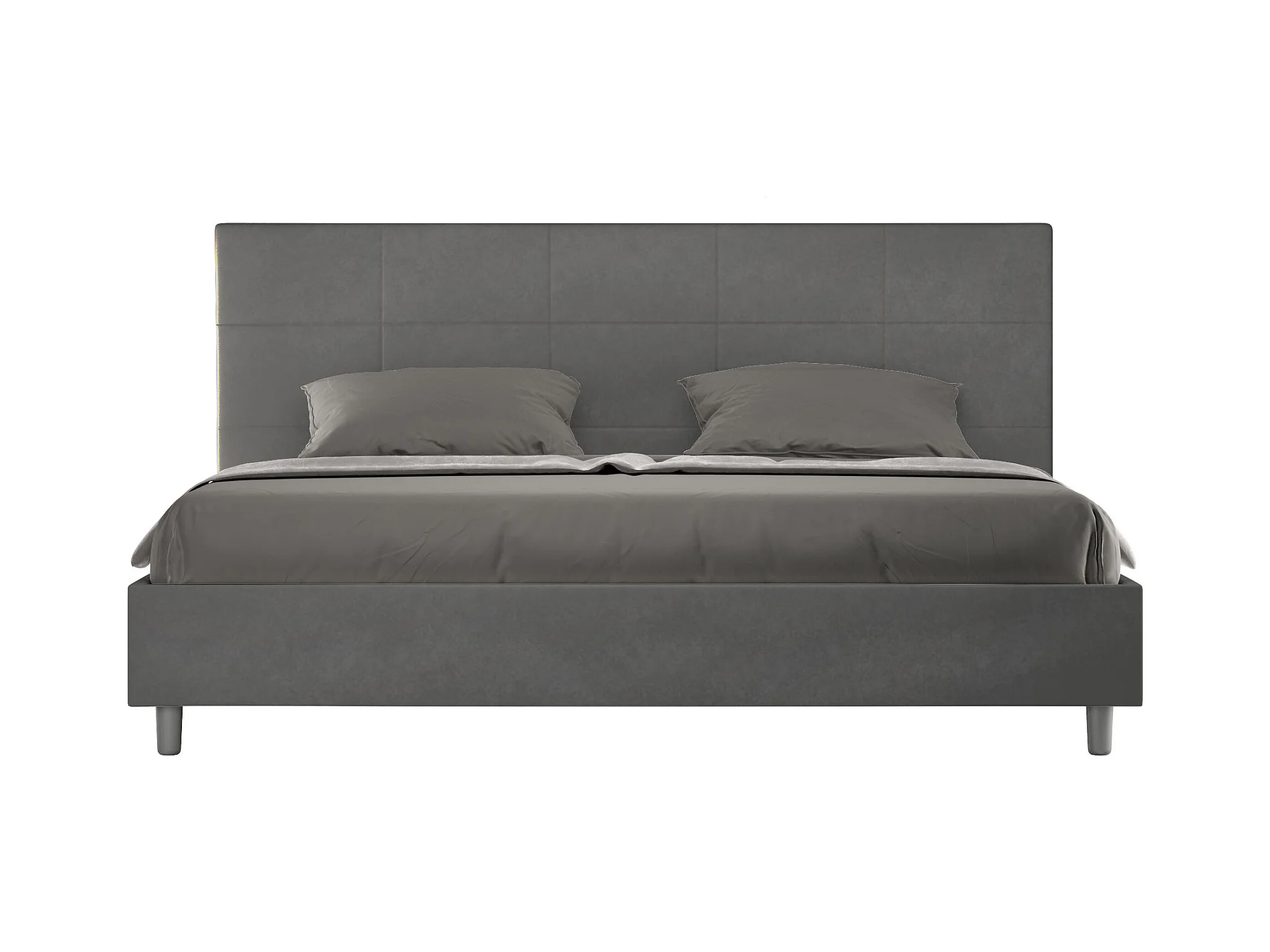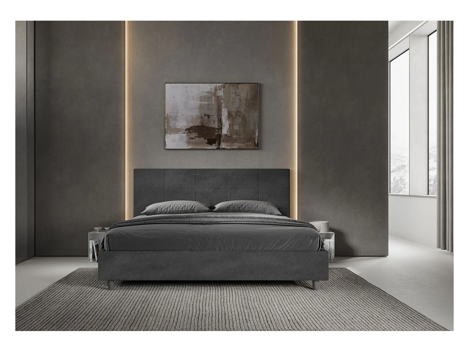 Lit king size coffre rembourré 180x190 microfibre gris Mika