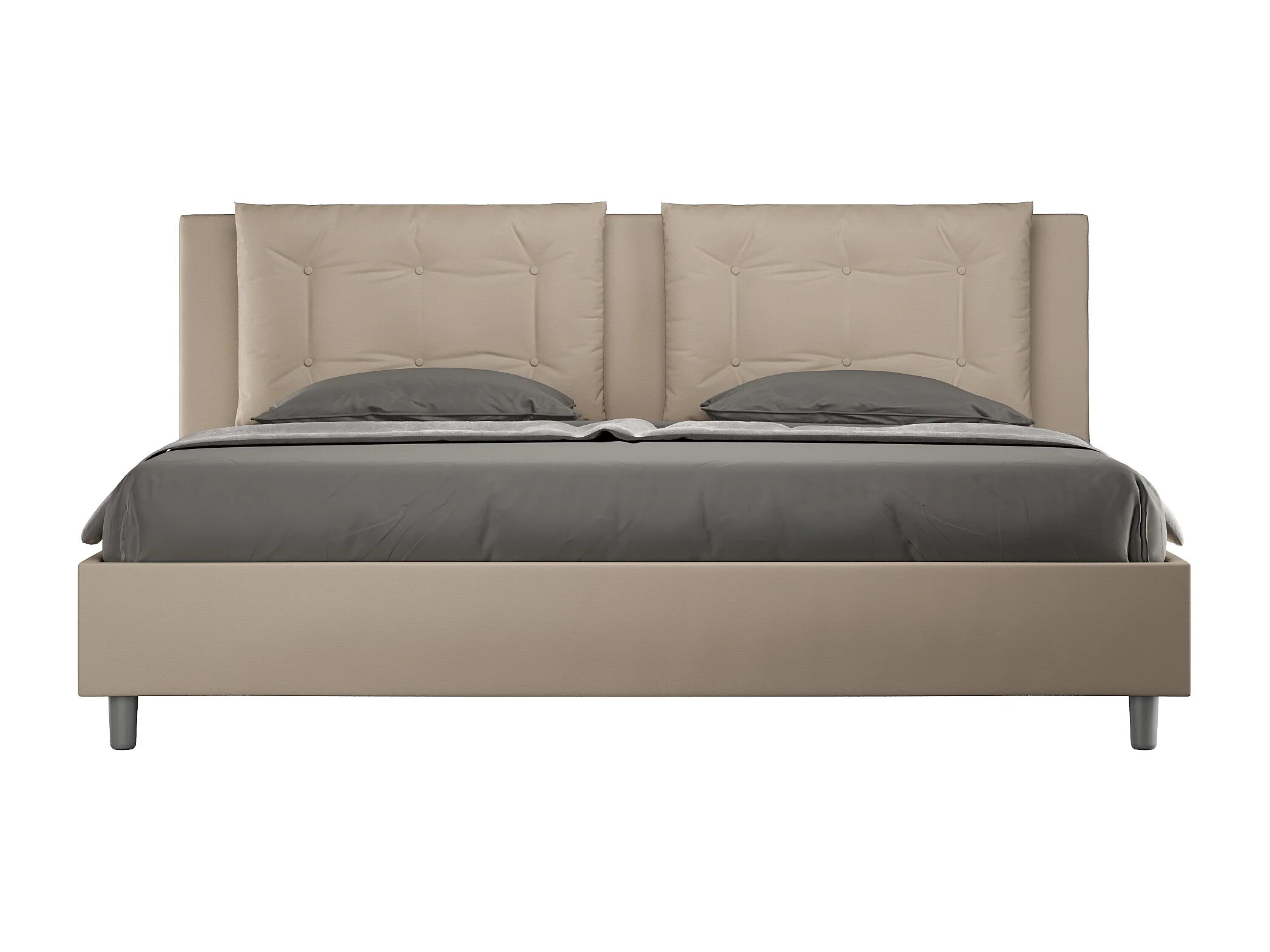 Lit king size sans sommier rembourré 200x200 similicuir taupe Annalisa