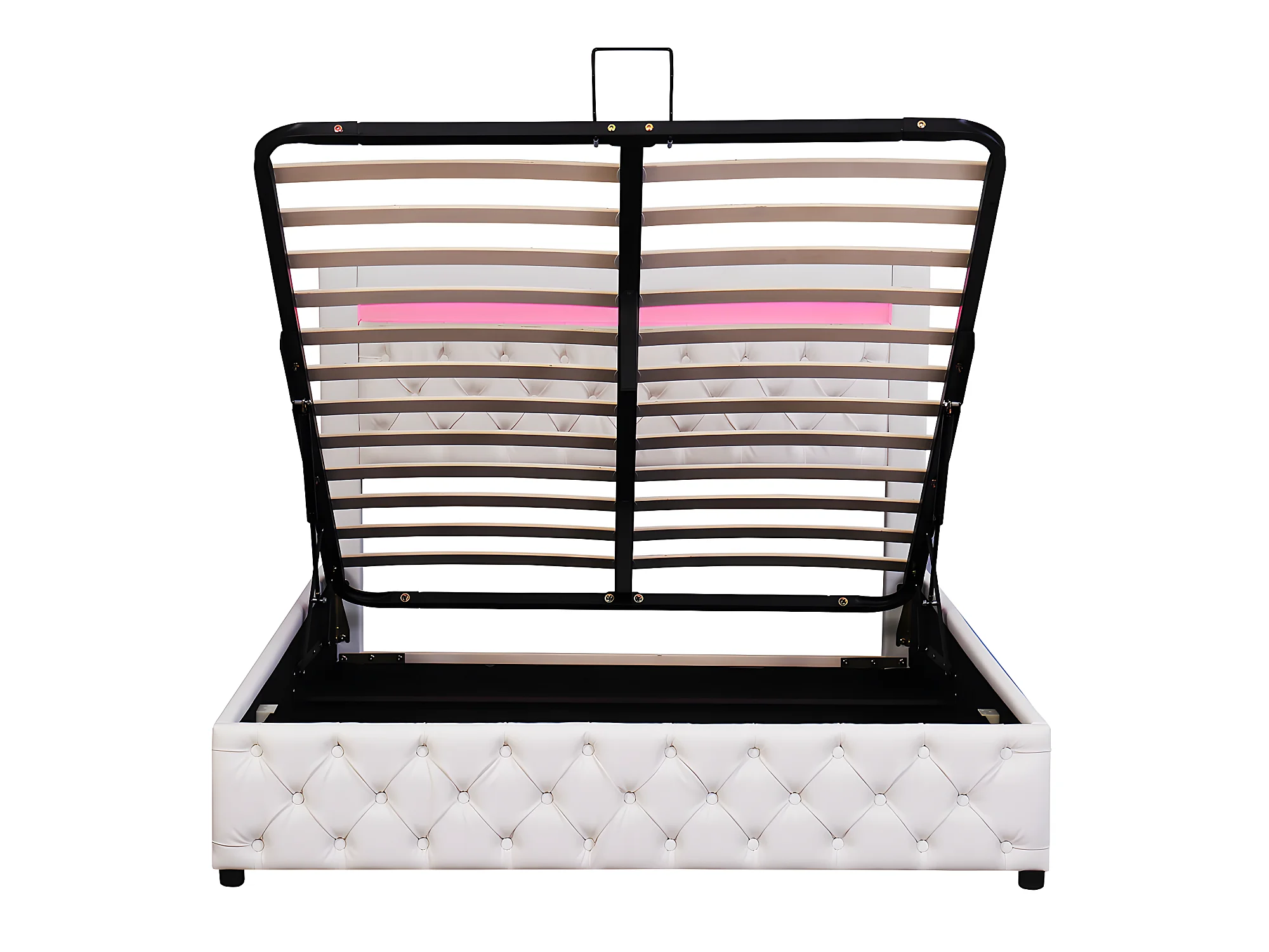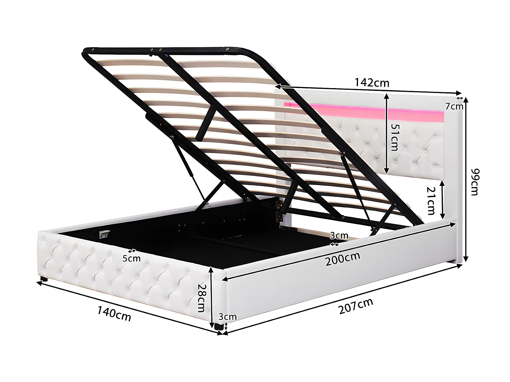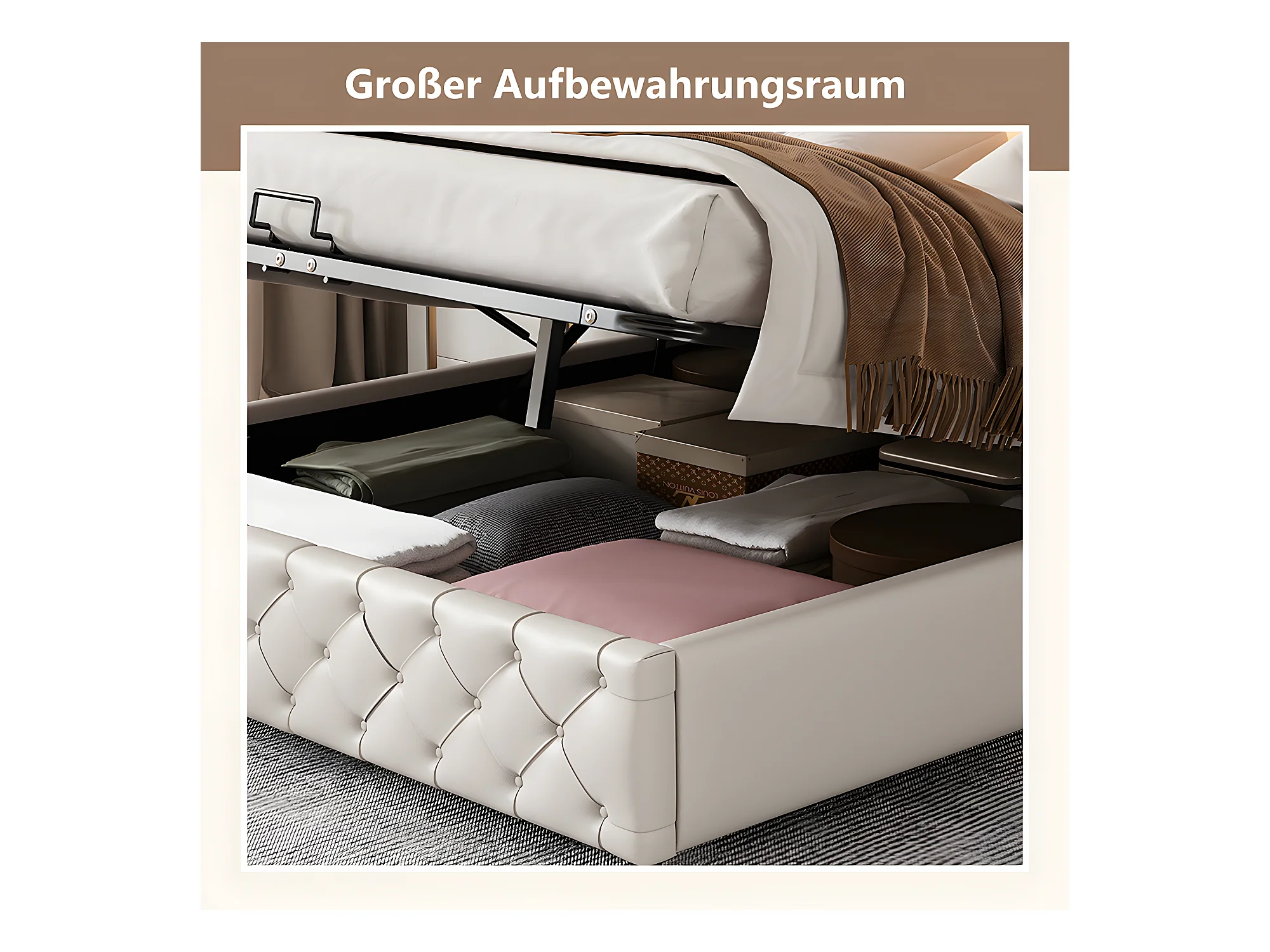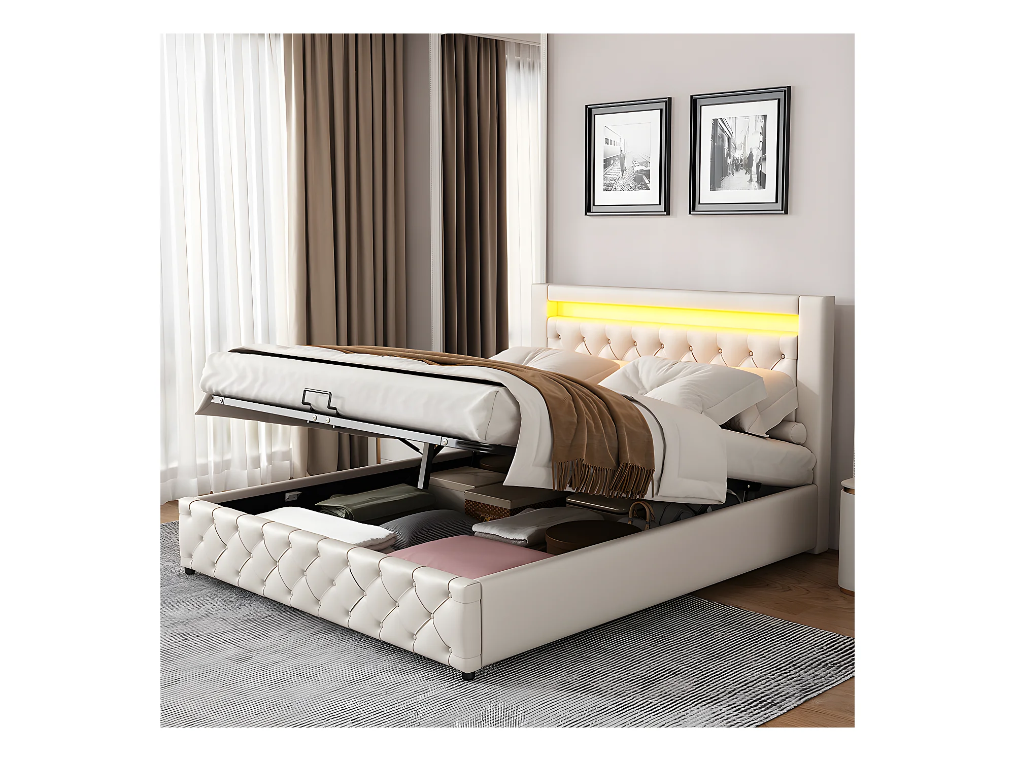Lit LED avec coffre - 140 x 200 cm - avec sommier à lattes relevable - Beige - Sweiko