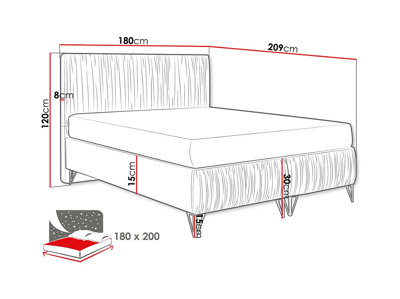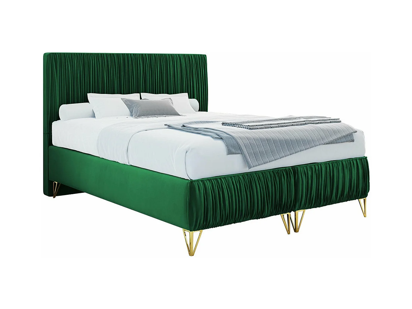 Lit continental Logan 112, Double, Vert, 180x200, Tapisserie, Sommier à lattes, 180x209cm