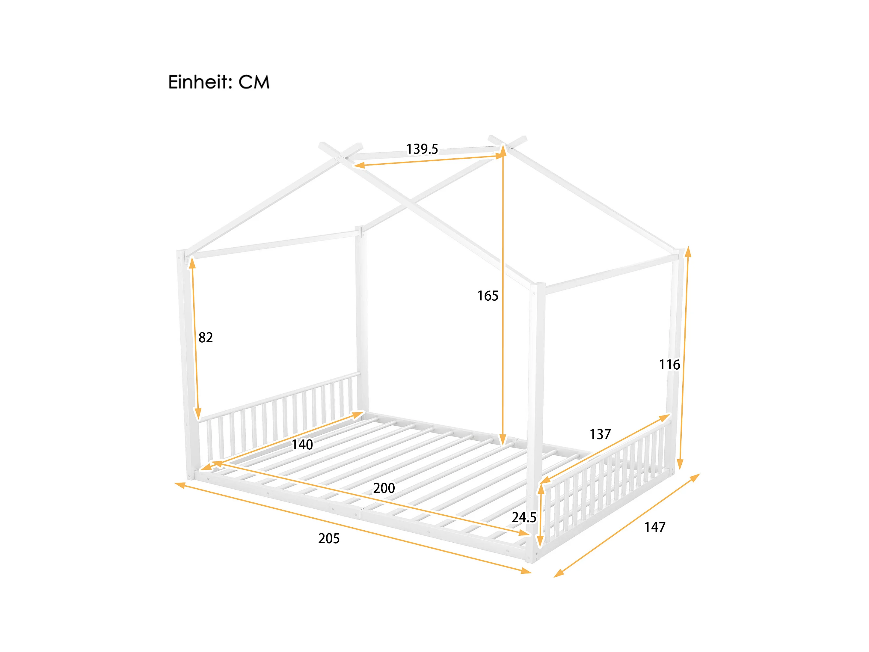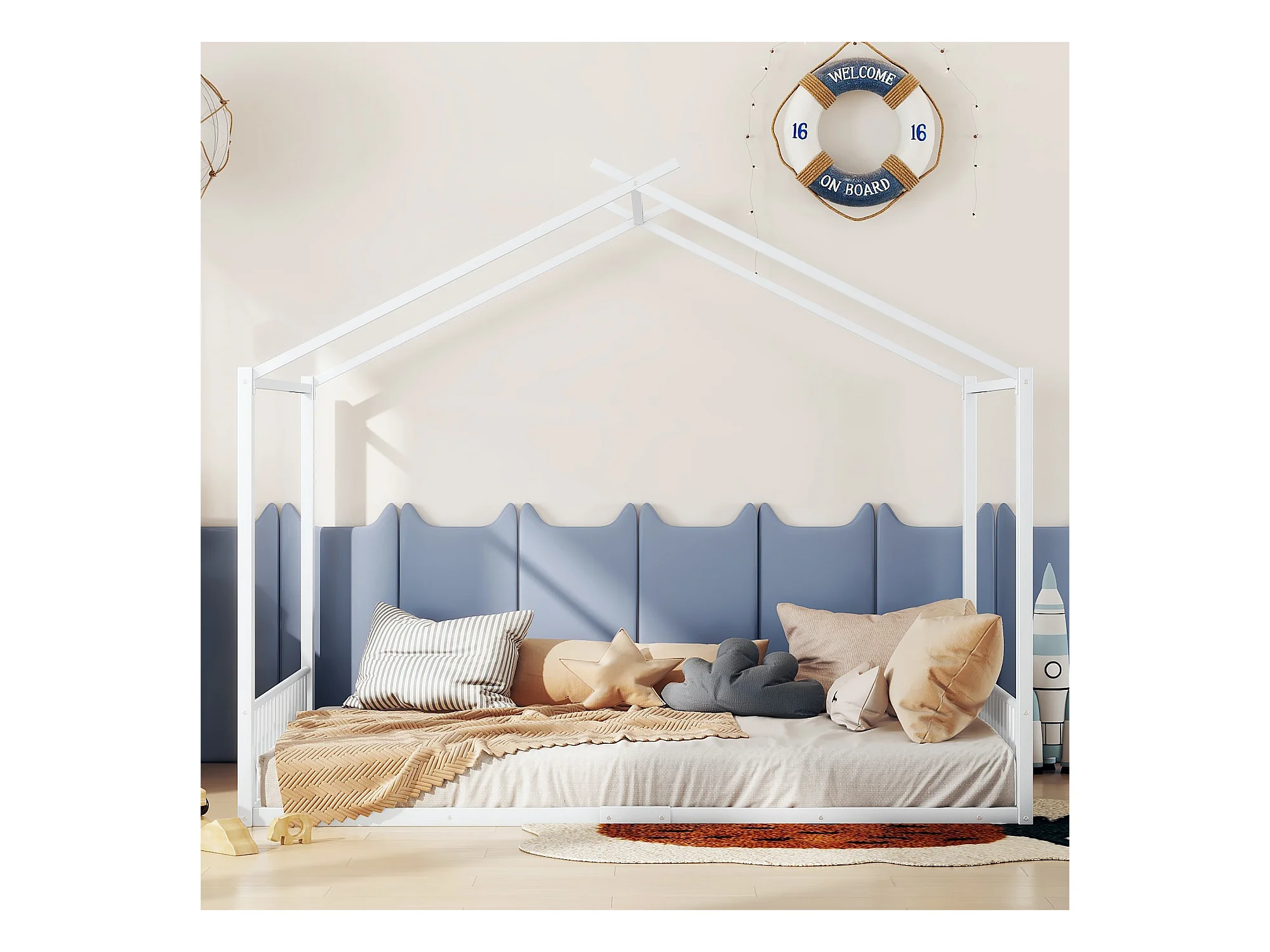 Lit maison 140x200 cm blanc en métal, lit enfant sans matelas, design simple et cadre robuste
