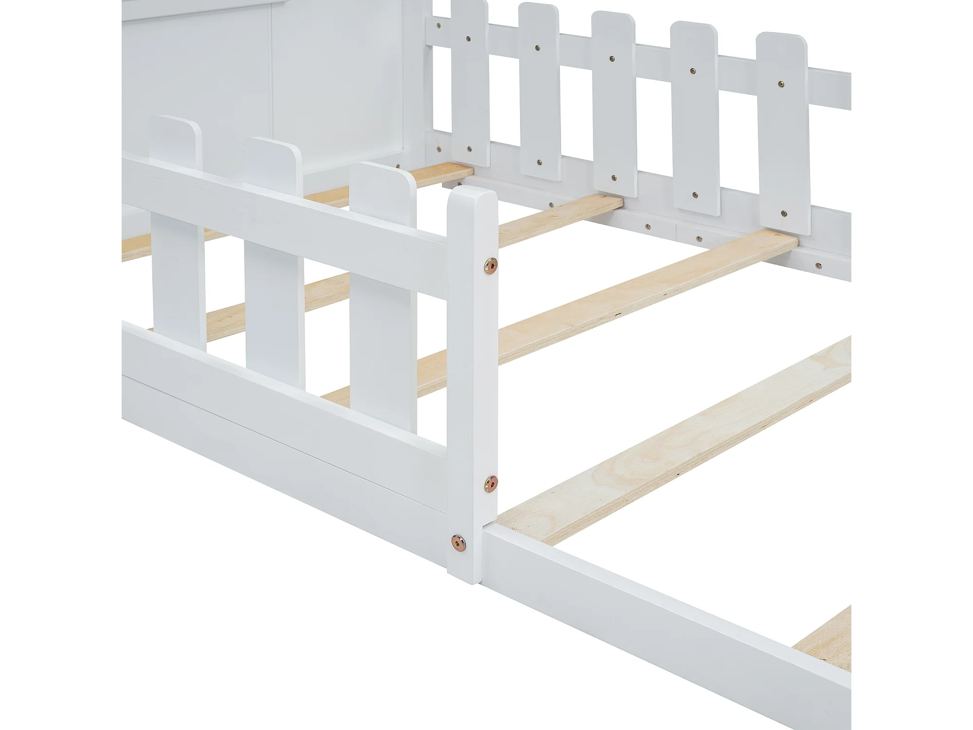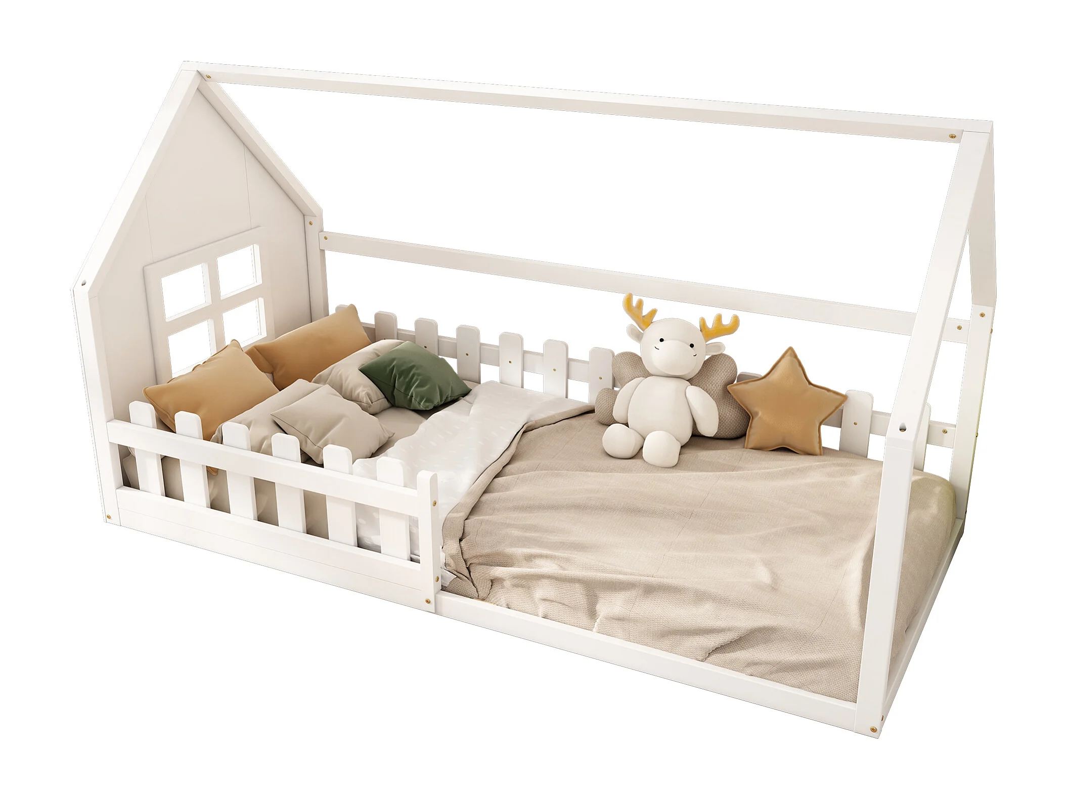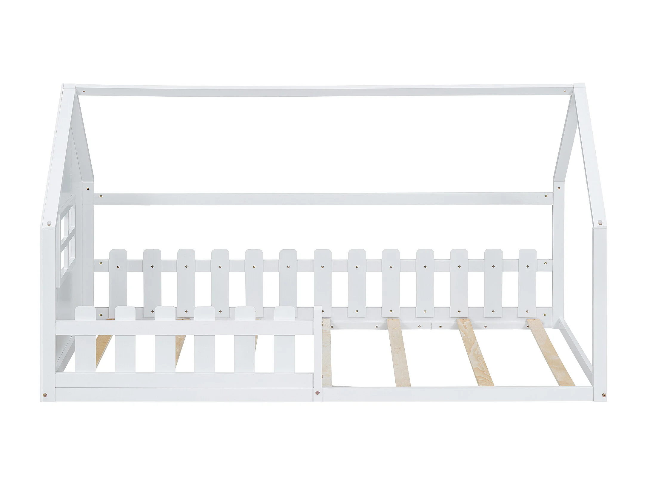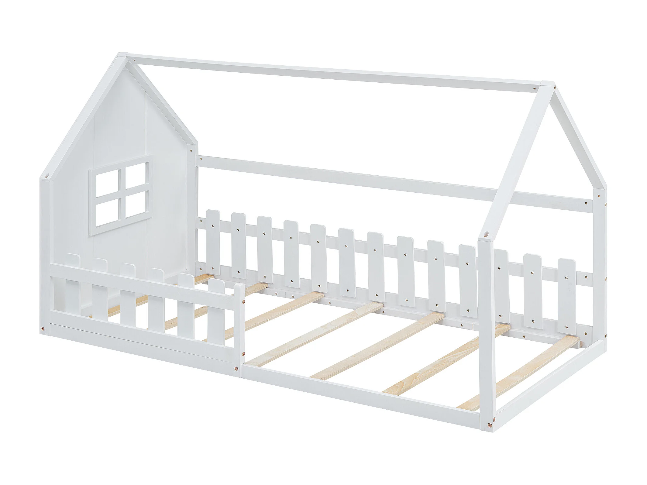 Lit cabane enfant 90x200 cm - avec barreaux de sécurité - Structure en bois blanc - Style scandinave épuré (sans matelas)