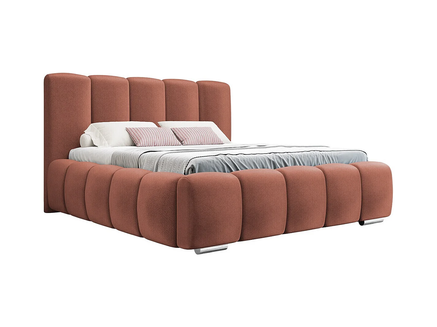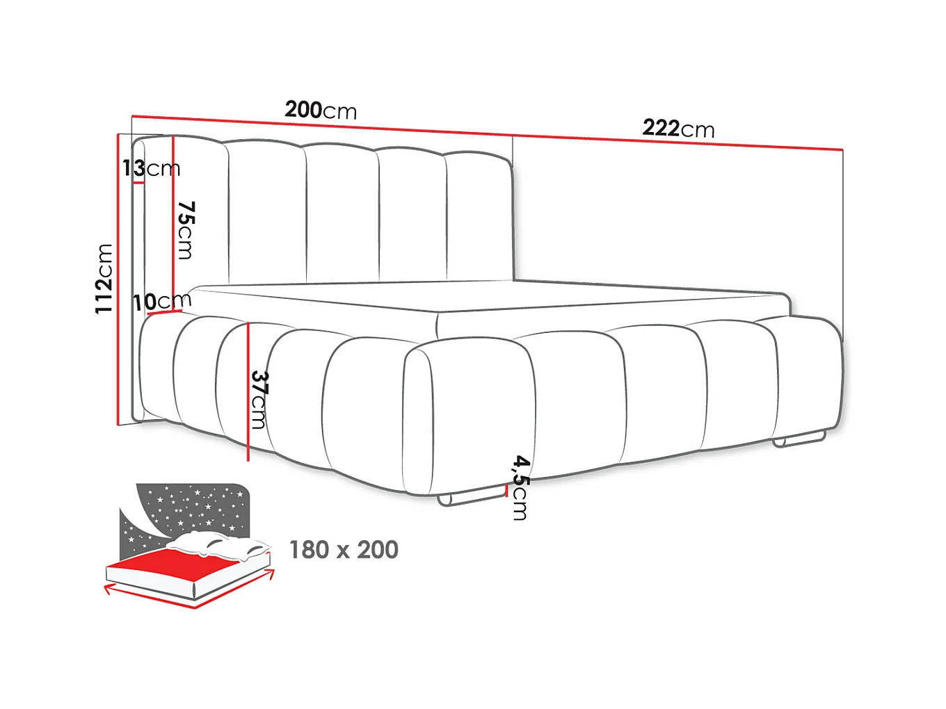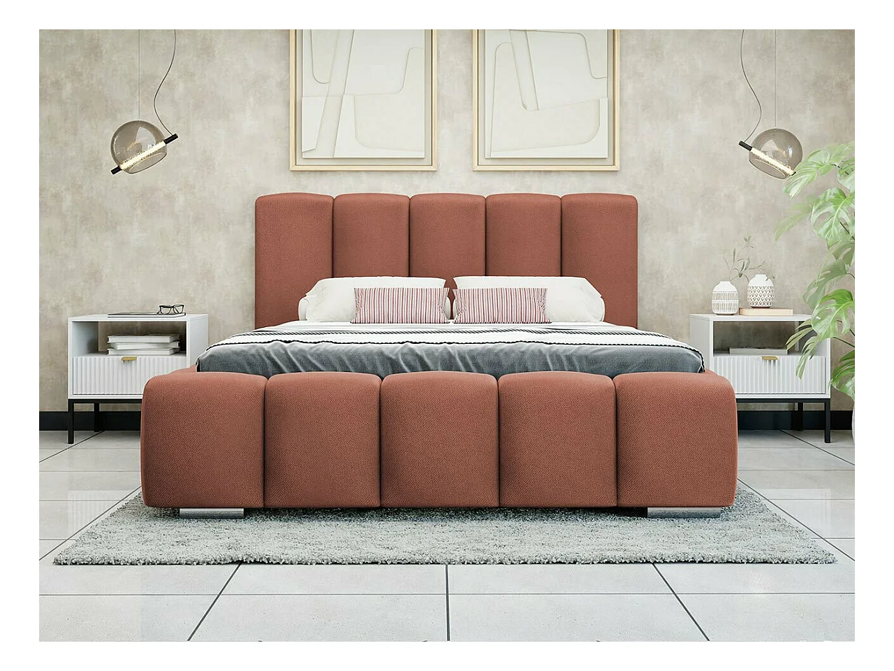 Lit TrendyNest 106, Double, Rouge, 180x200, Tapisserie, Sommier à lattes, 200x222x112cm