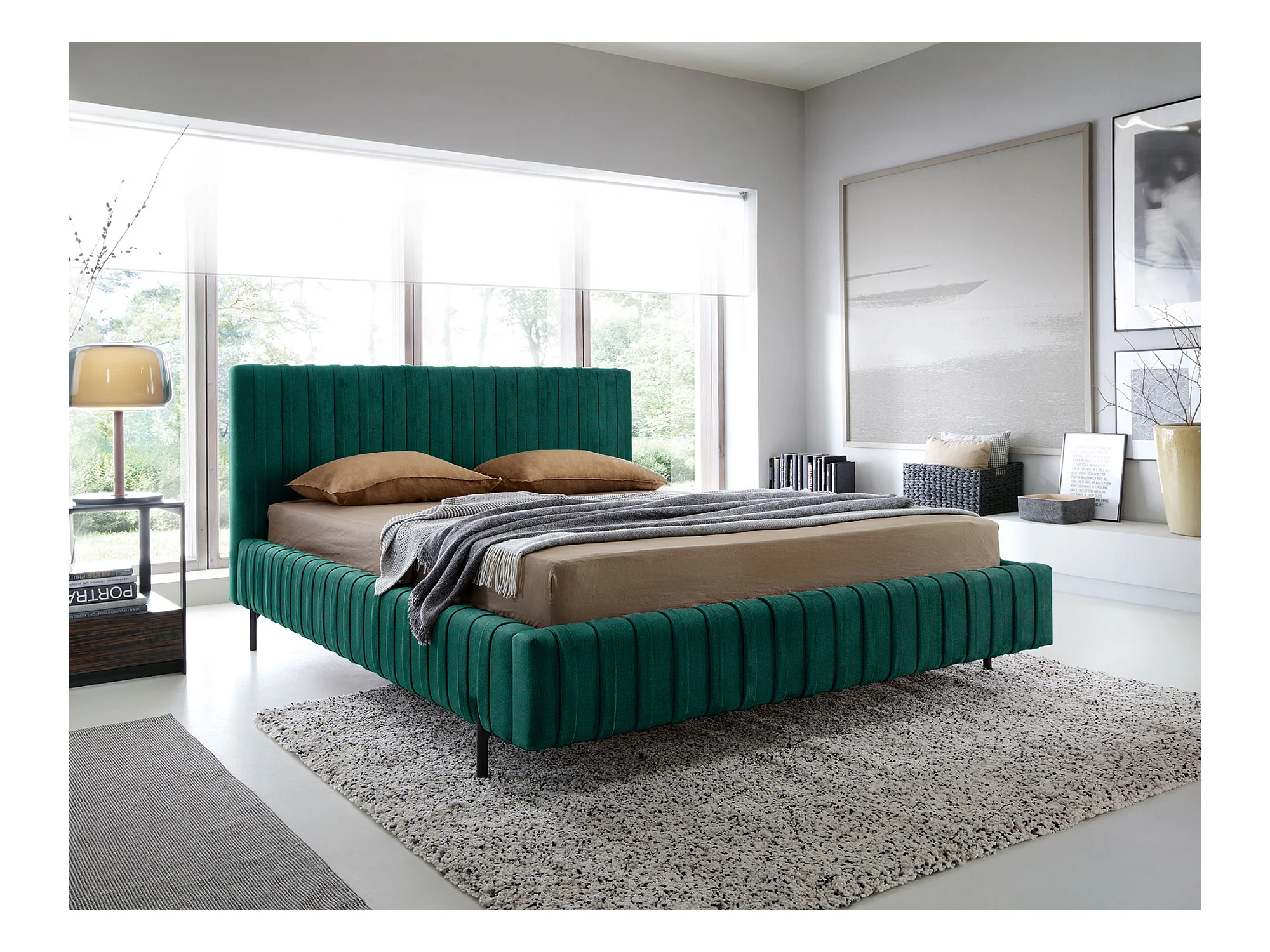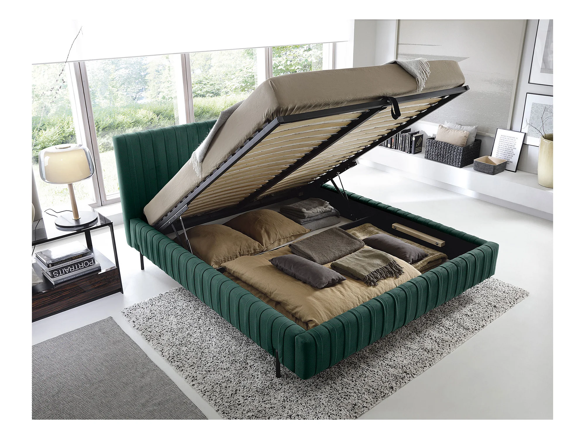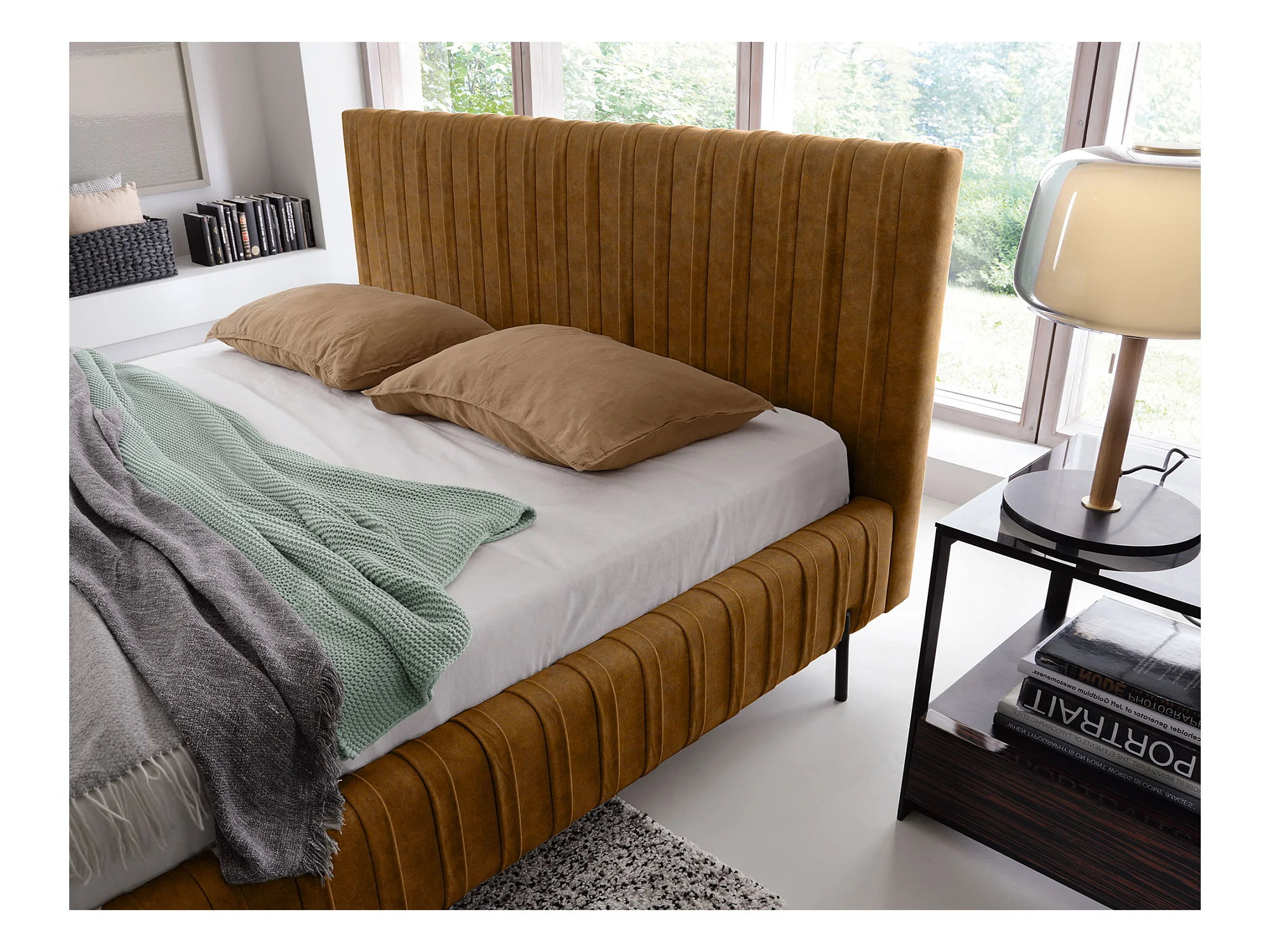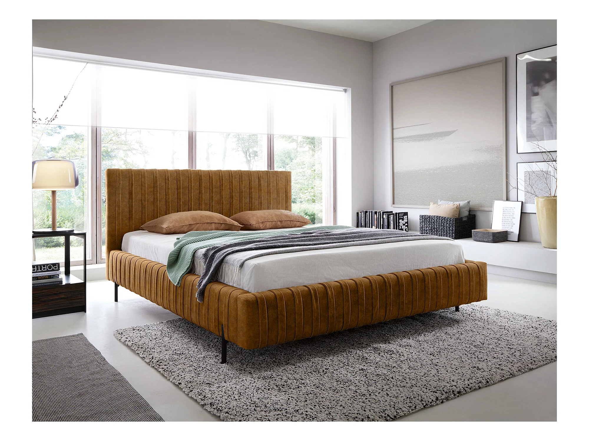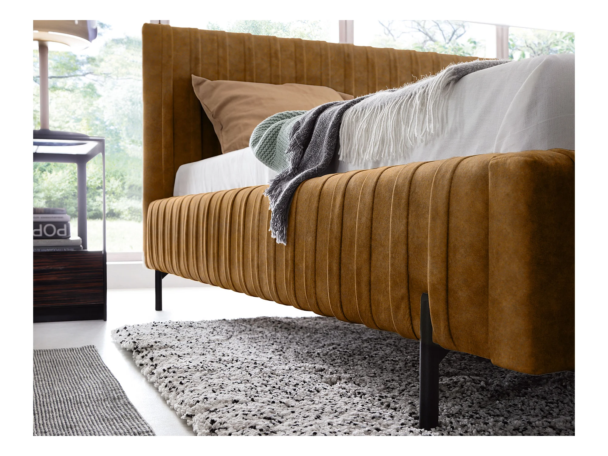 Lit coffre Plika prestige – Design et tissu pour un confort absolu-Couleur Jaune chamoix-180x200
