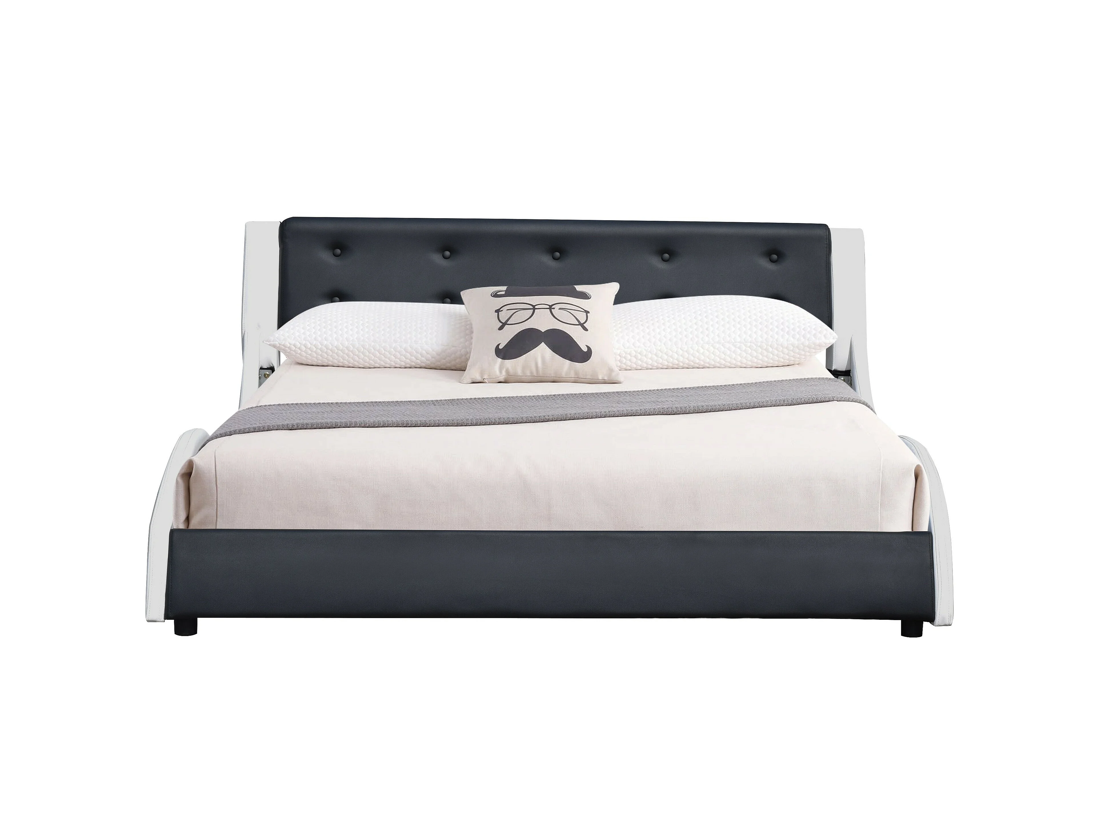 Lit mathis pour matelas 160x200 - Sommier + Tête de Lit Couleur BLANC & NOIR