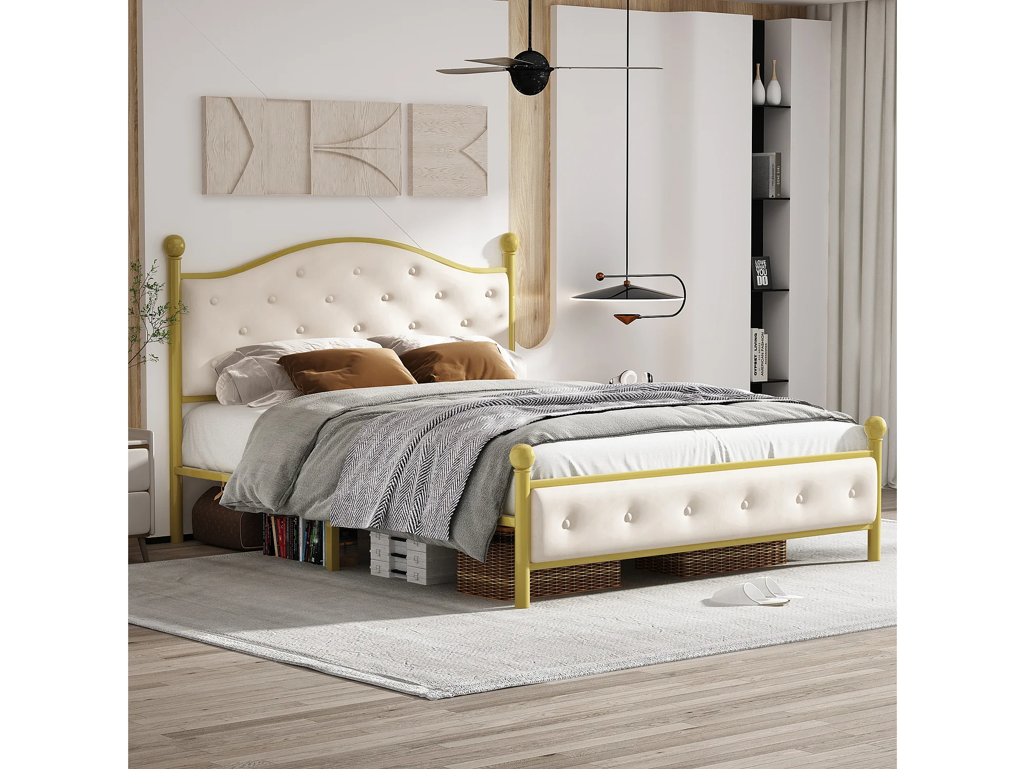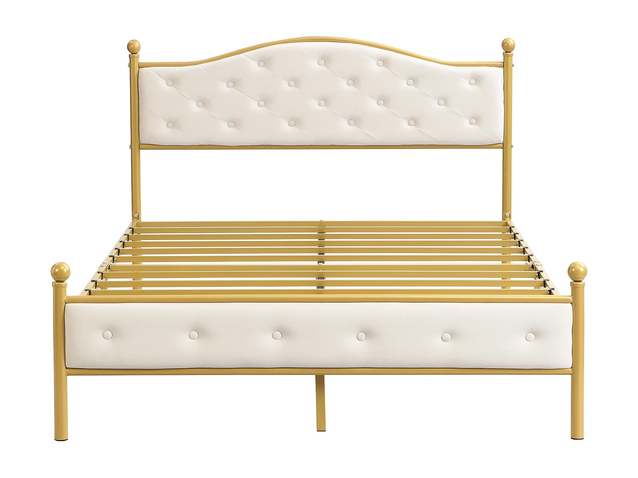 Lit métallique moderne 140x200 cm, cadre avec sommier à lattes, tête de lit, coloris doré(sans matelas)