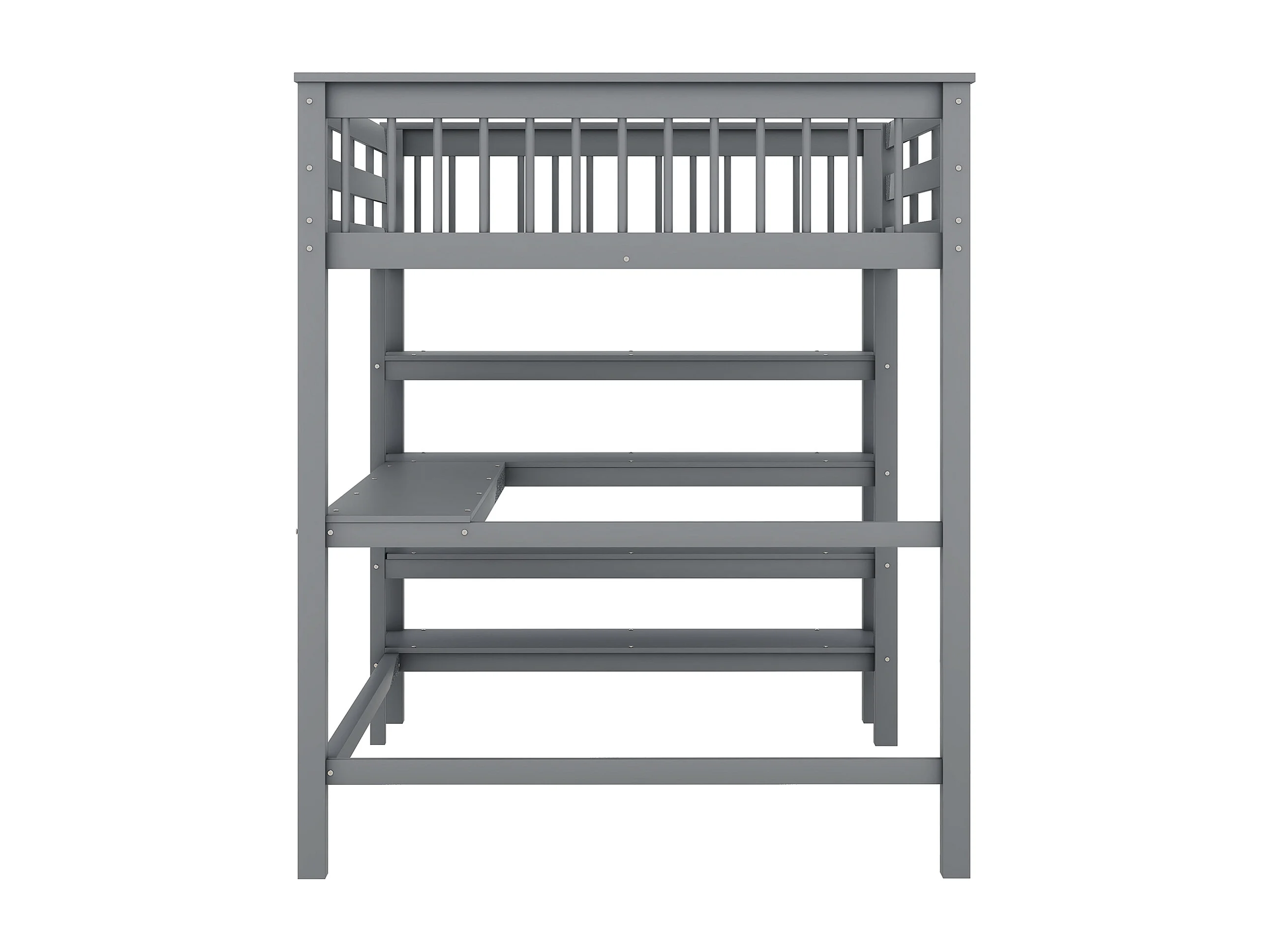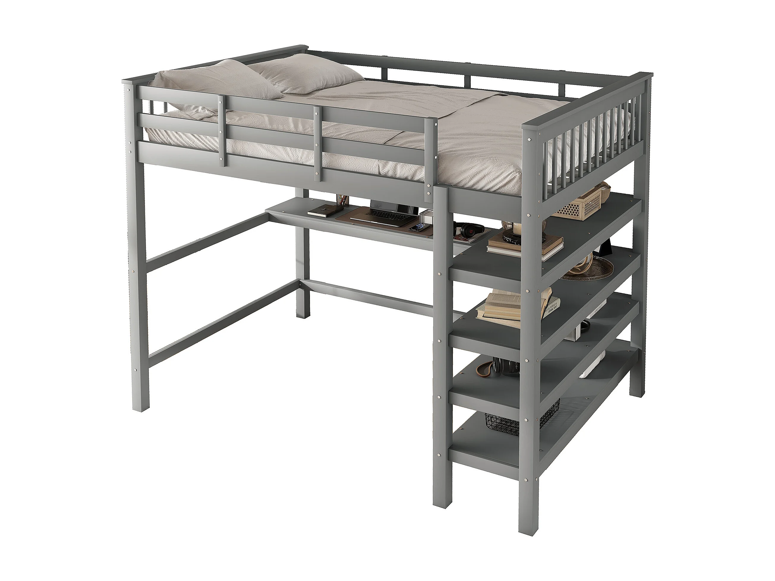 Lit mezzanine 140 x 200 - avec étagères, sommier à lattes - gris - sans matelas