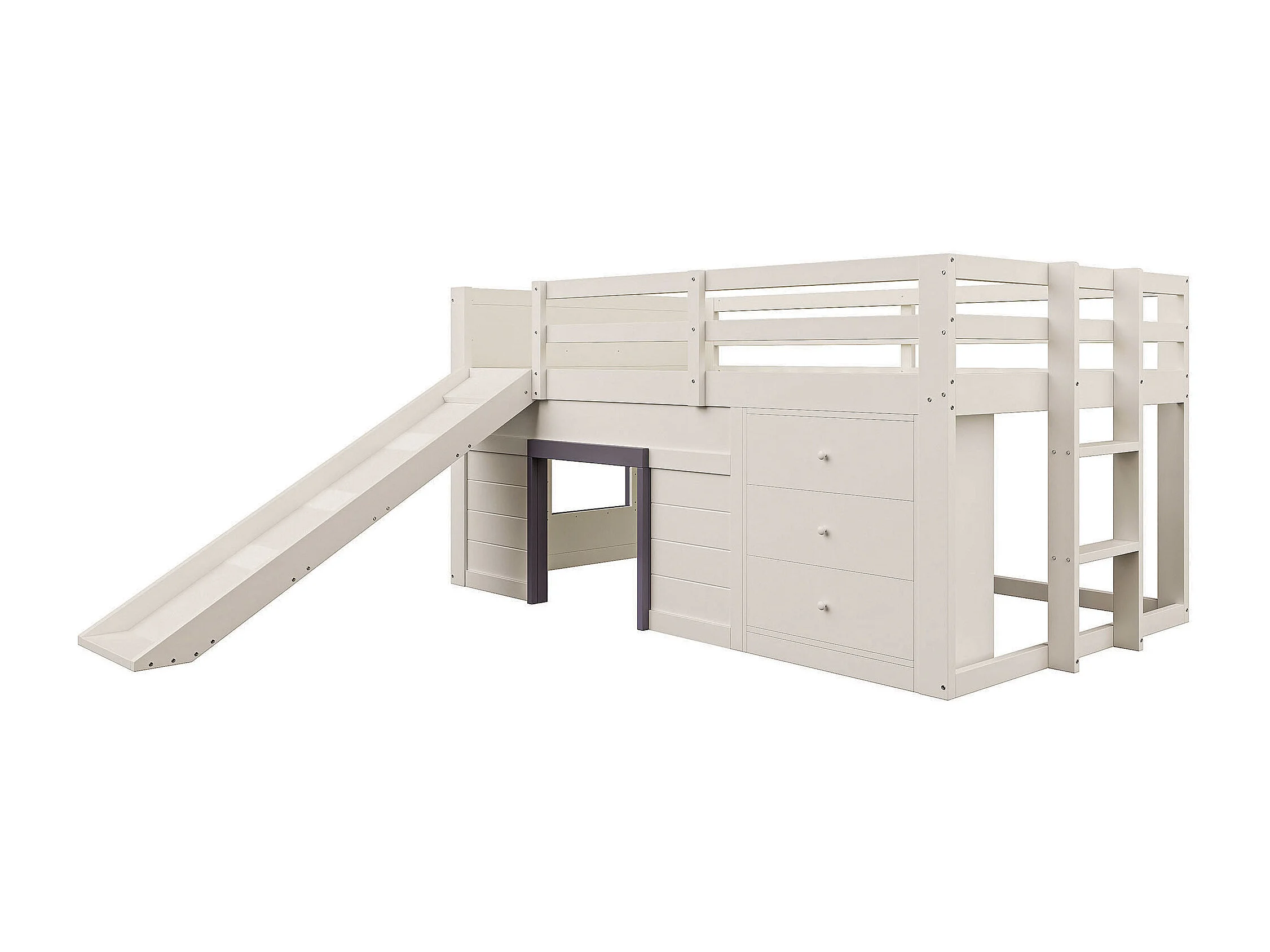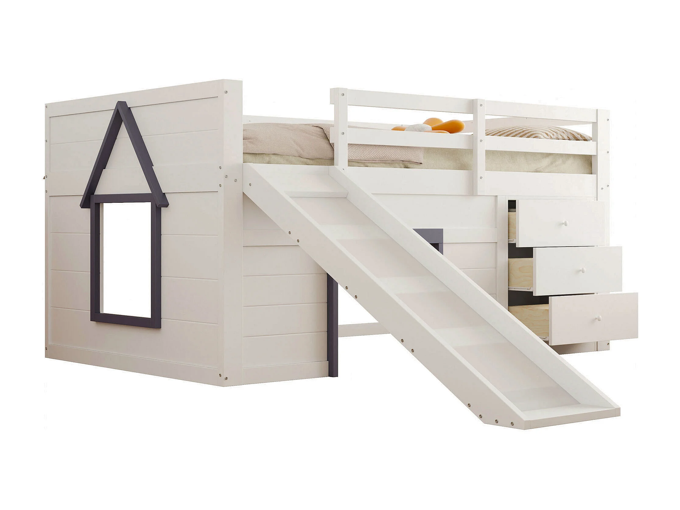 Lit mezzanine 140 x 200 cm - avec 3 tiroirs et sommier à lattes - blanc