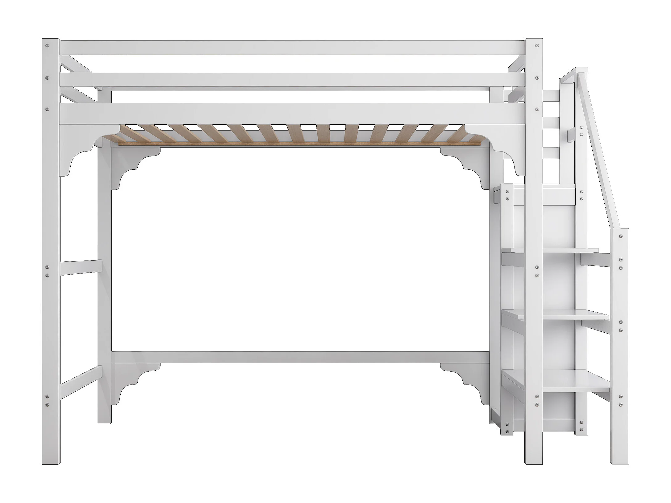 Lit mezzanine 140 x 200 cm - avec sommier à lattes et rangement ouvert - blanc - sans matelas