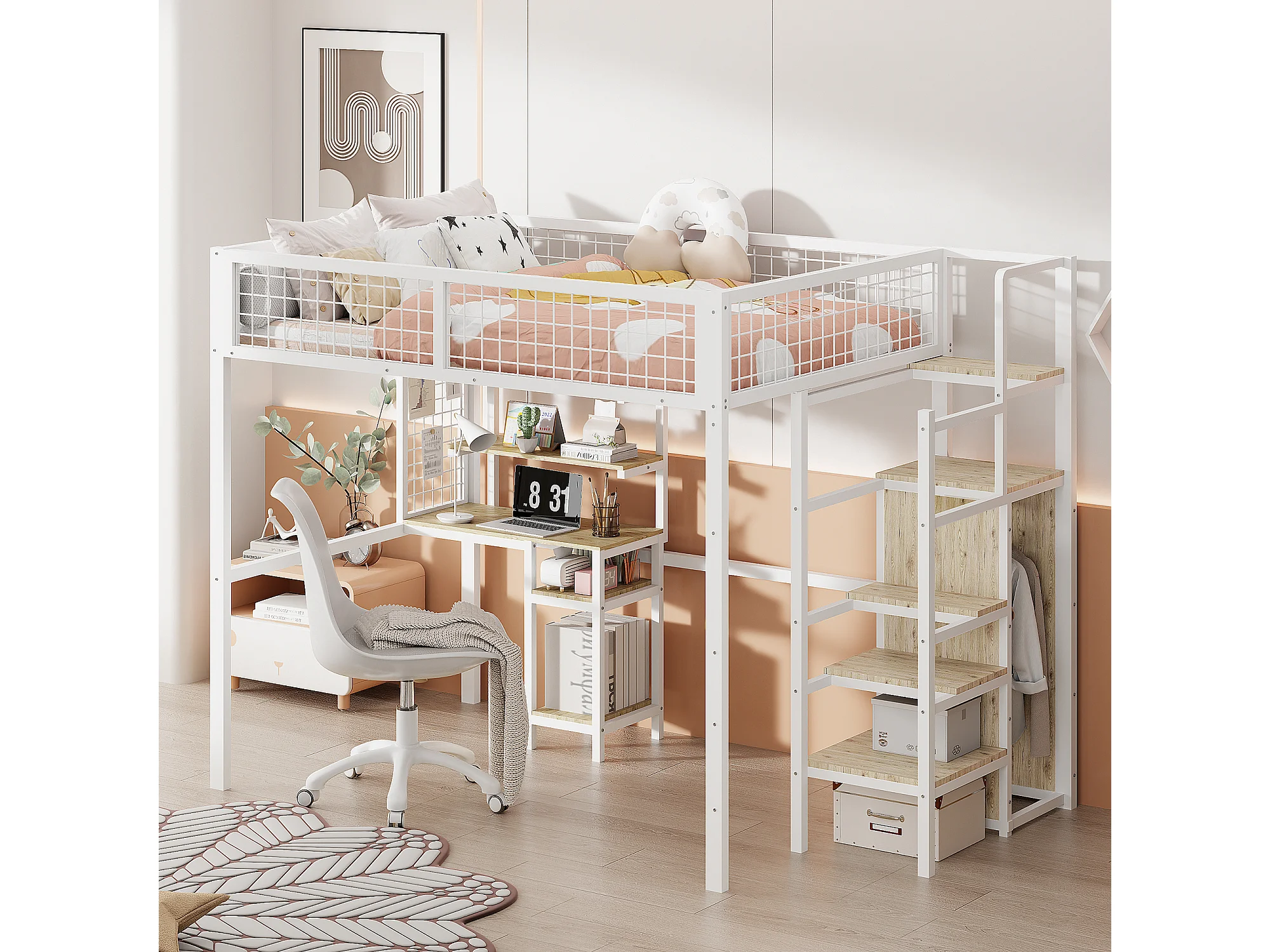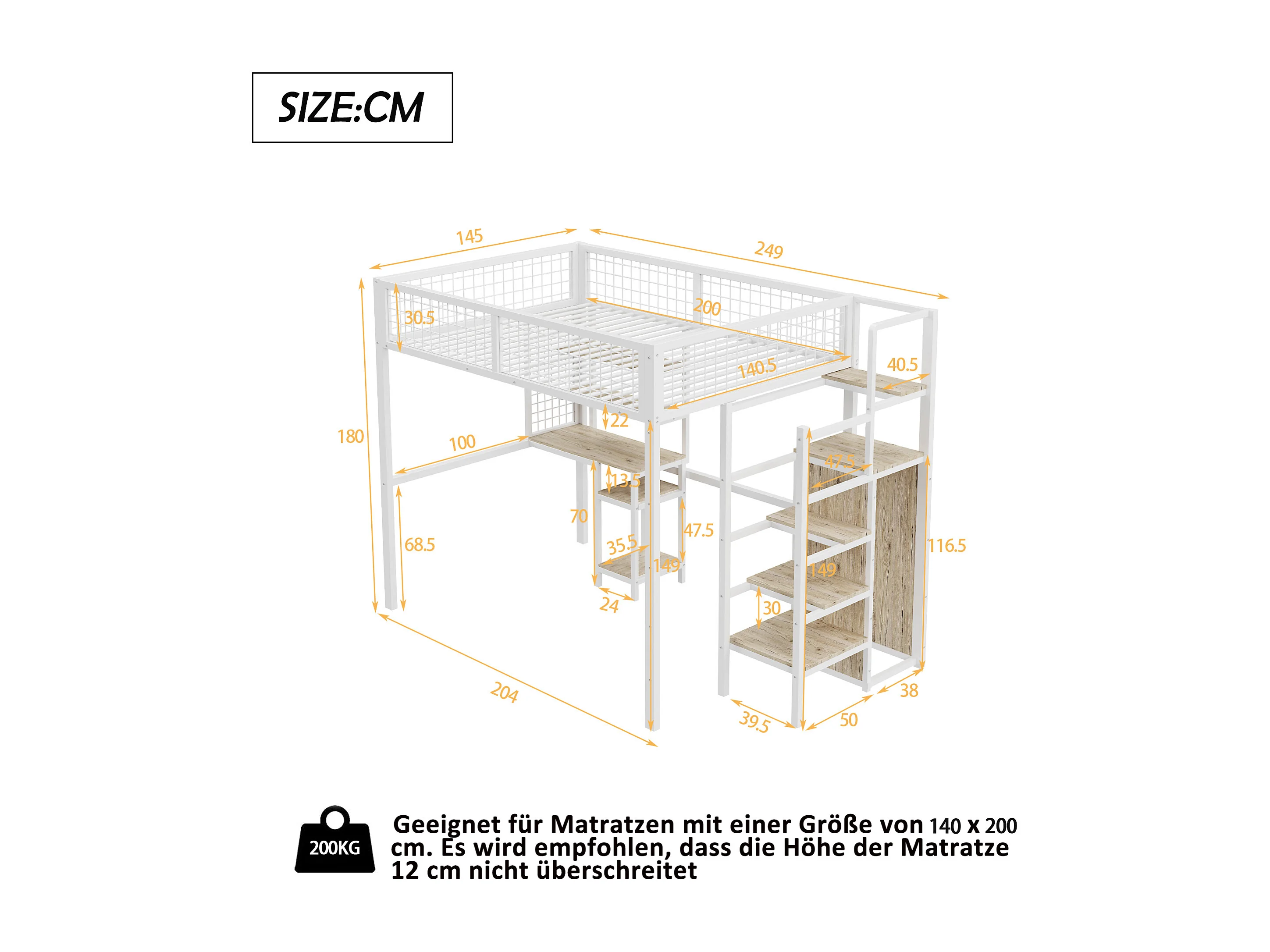 Lit mezzanine 140 x 200 cm - en métal - blanc - sans matelas