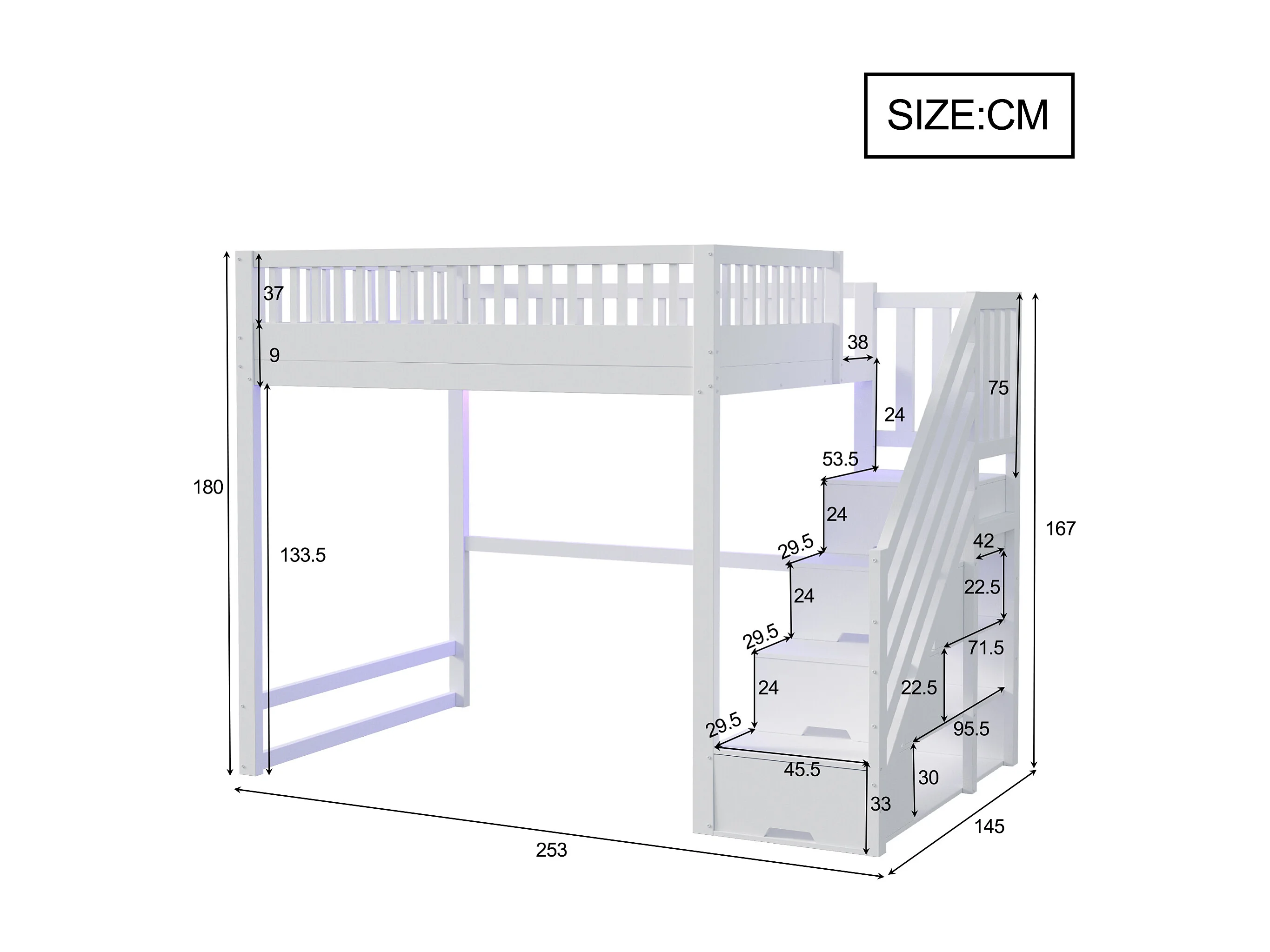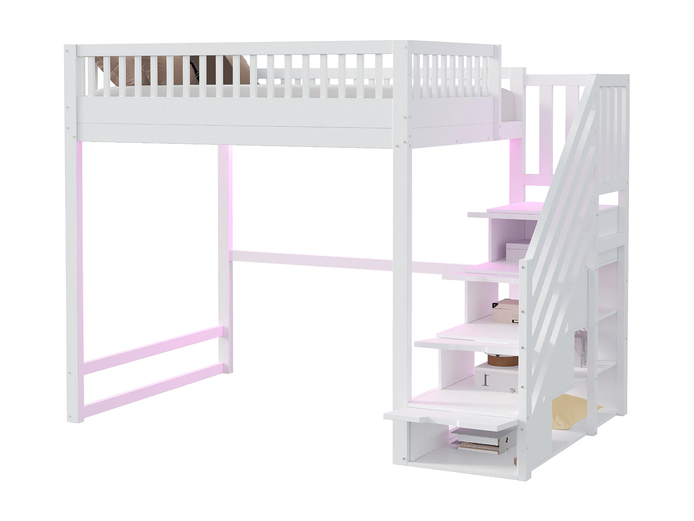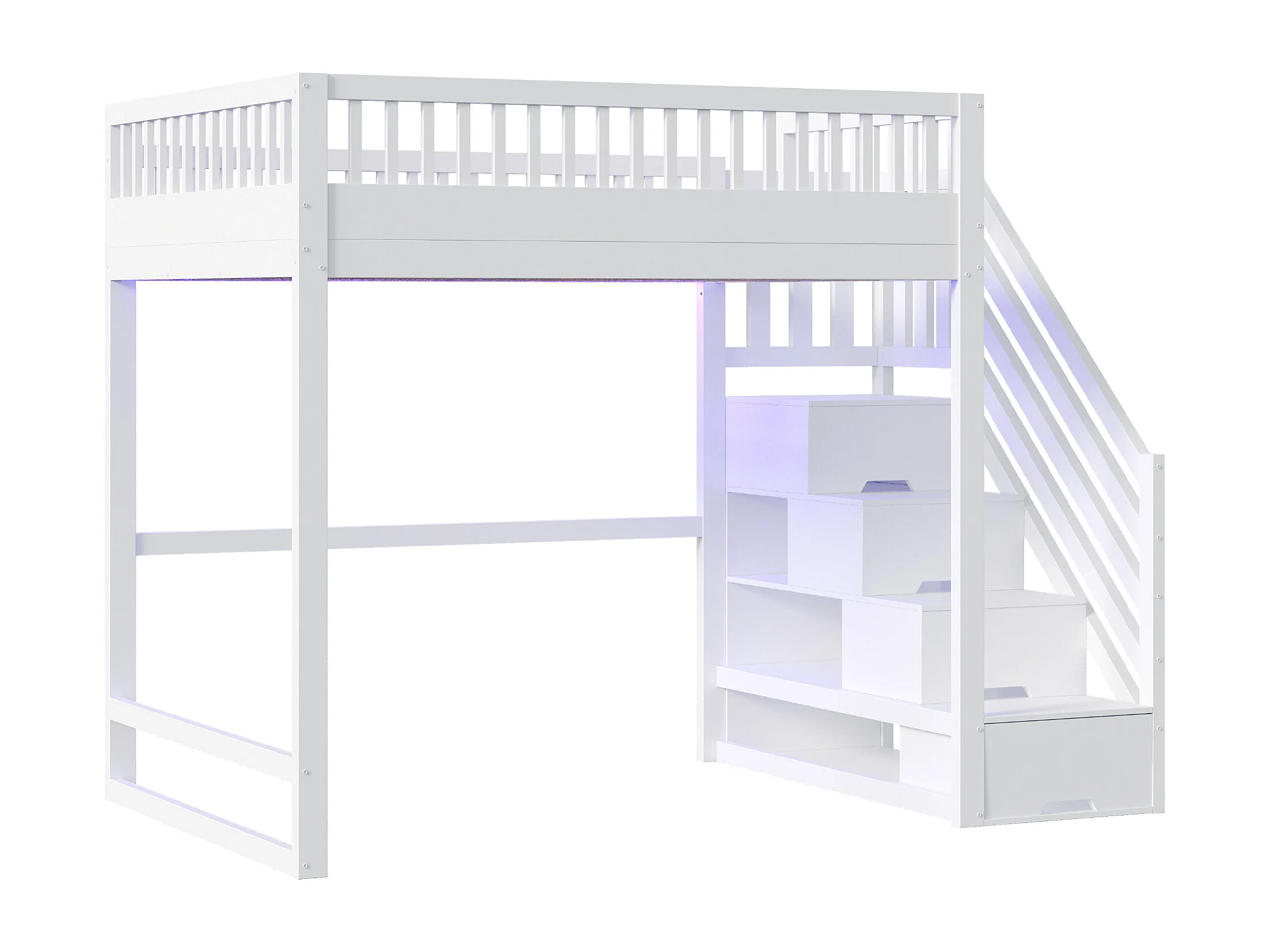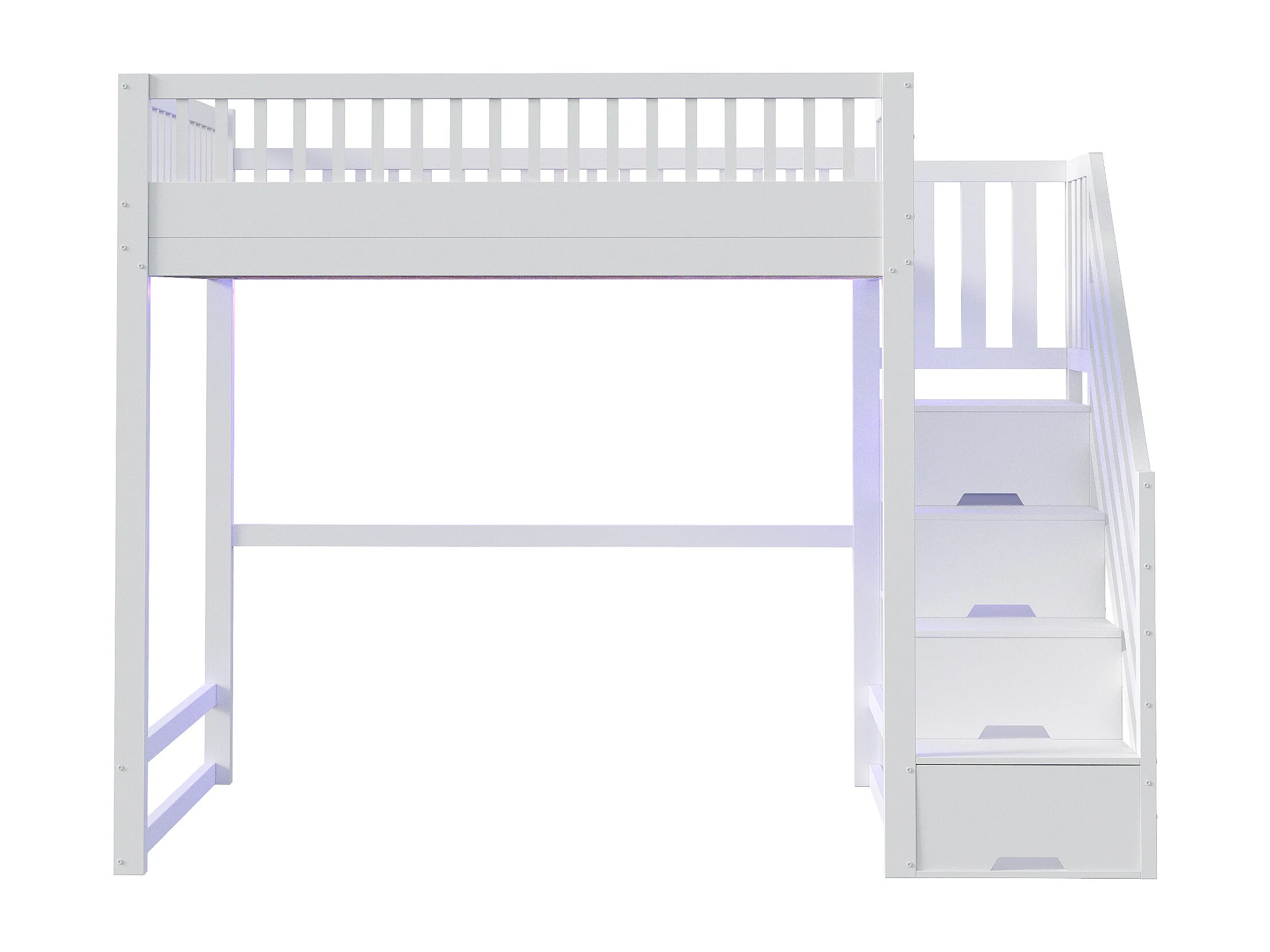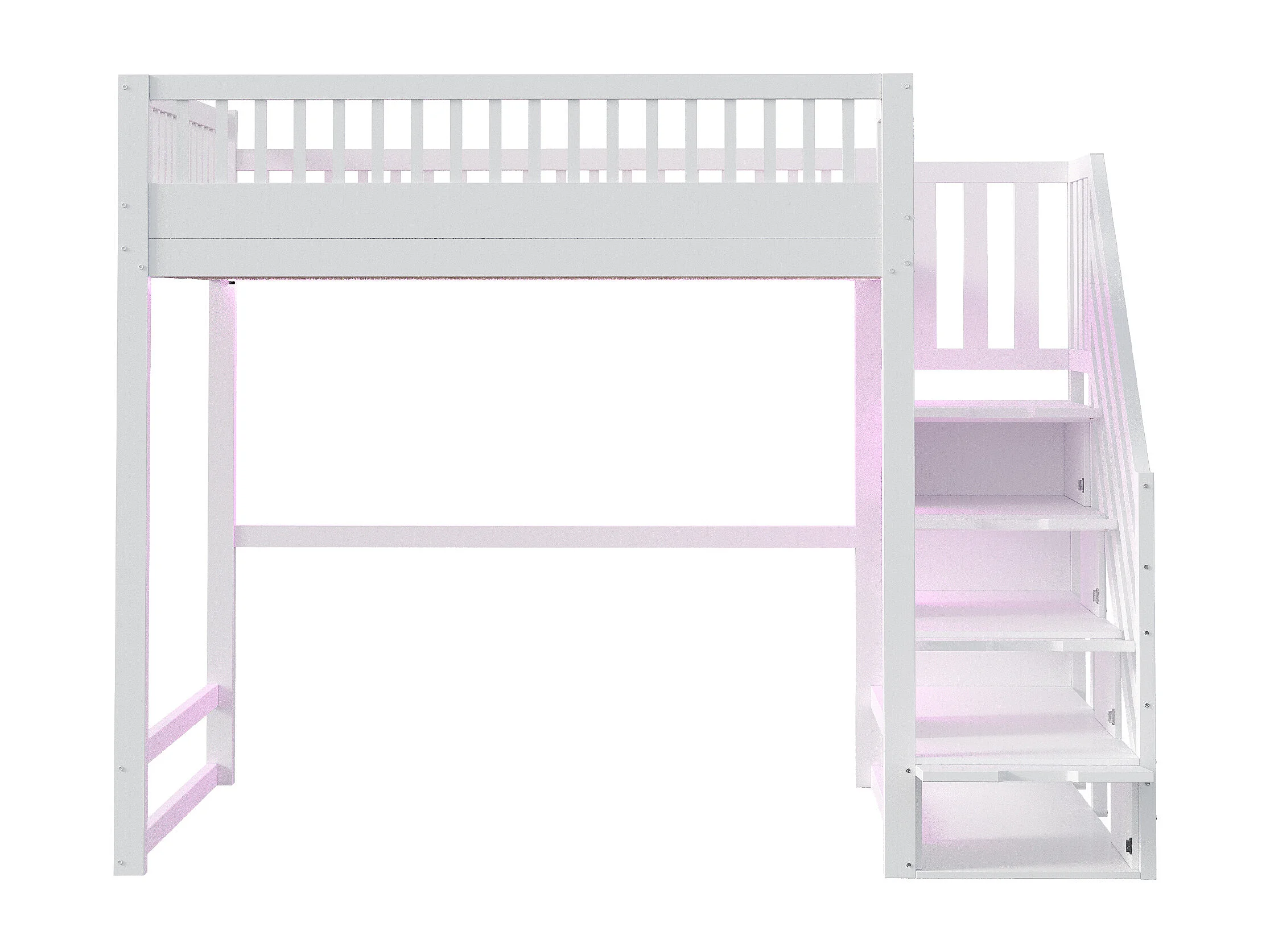 Lit mezzanine 140x200 cm - avec échelle de sécurité - avec barrières de sécurité - équipé de lumières LED - blanc (matelas non inclus)