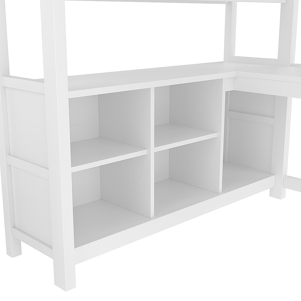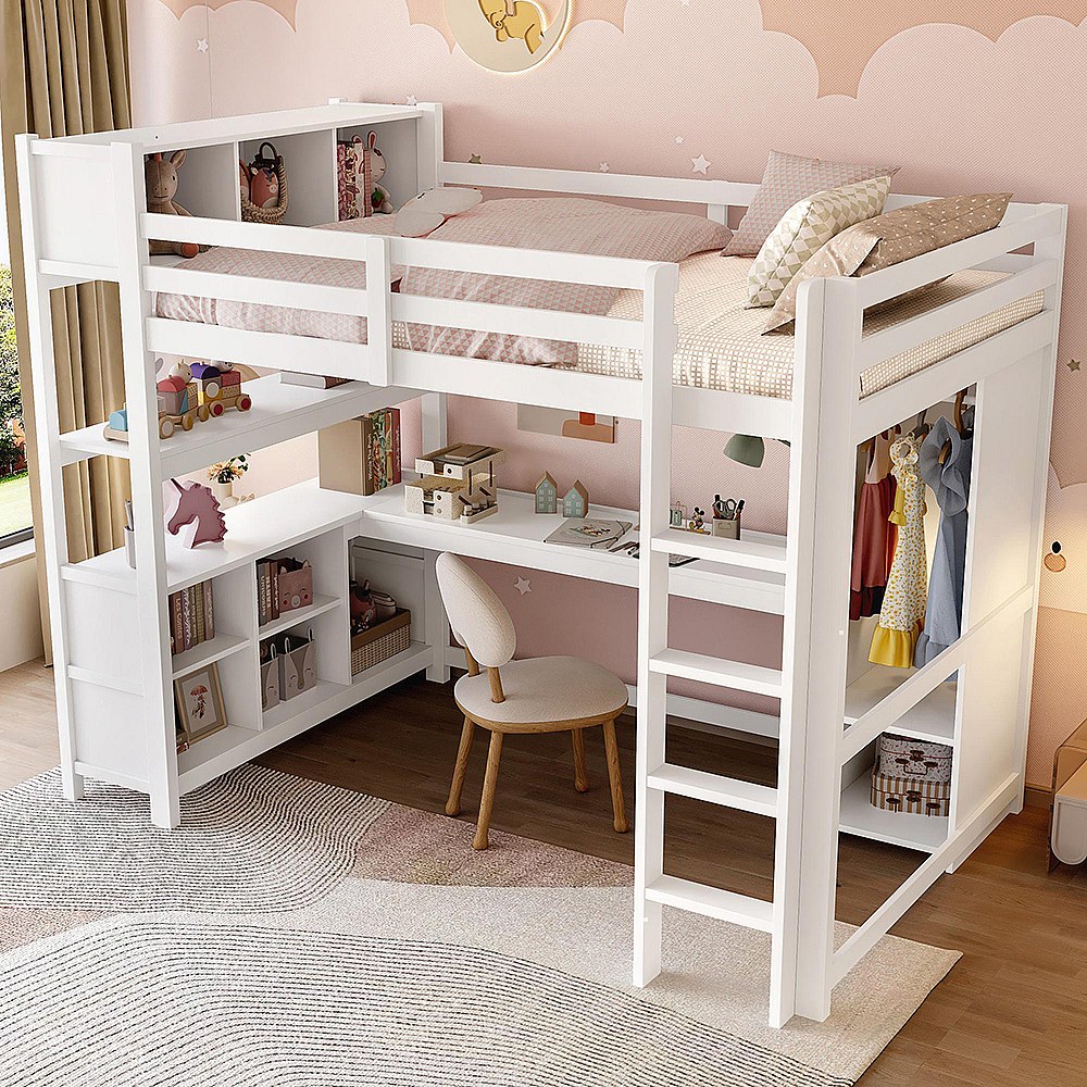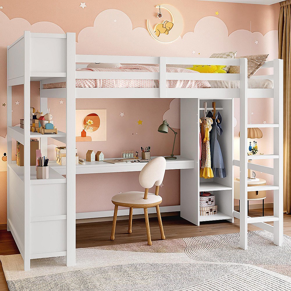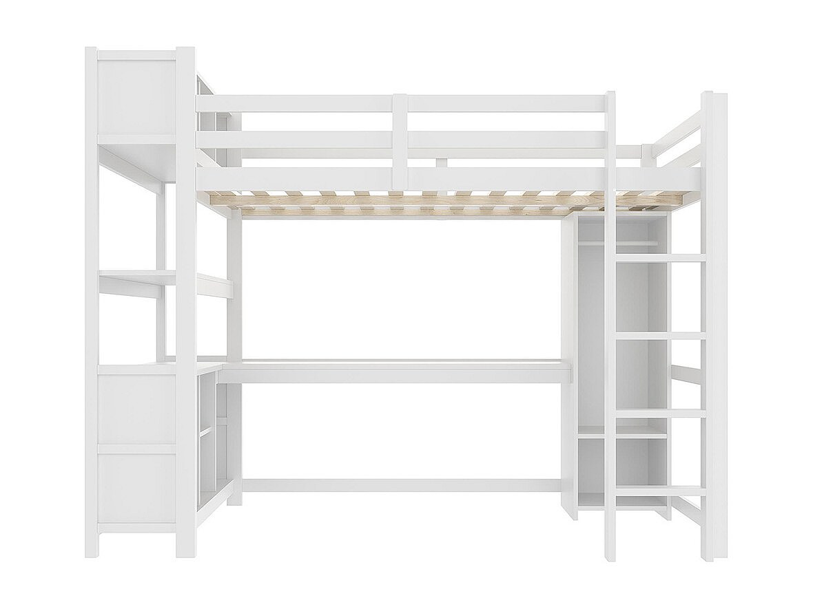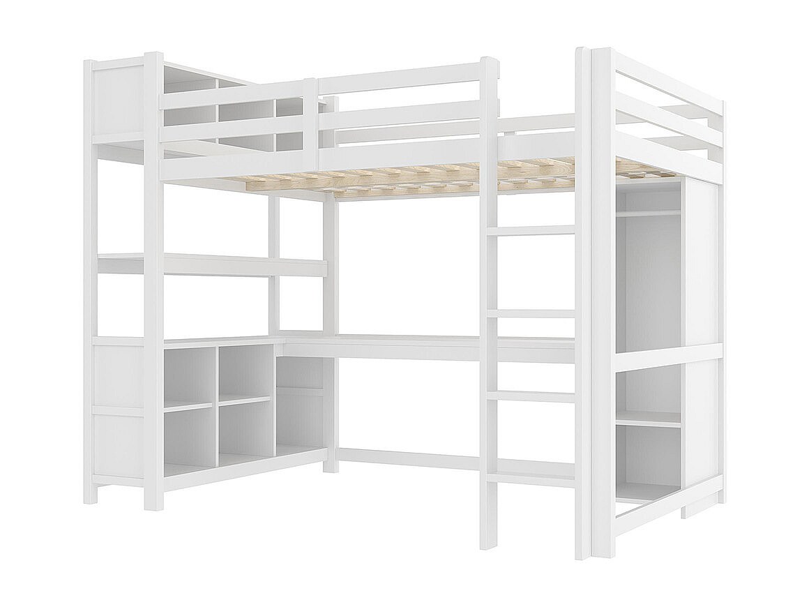 Lit mezzanine 140x200 cm rangement étagères bureau armoire sans matelas blanc
