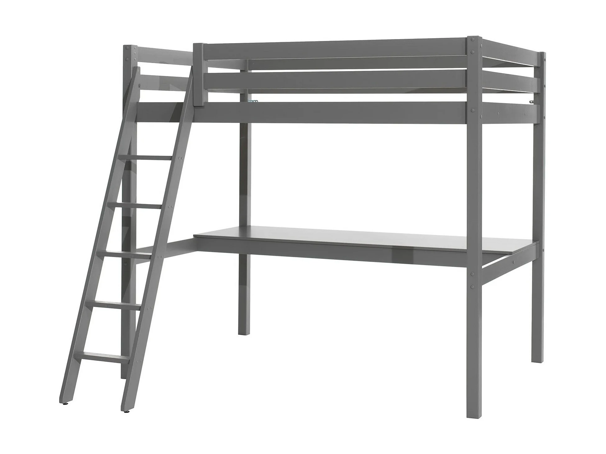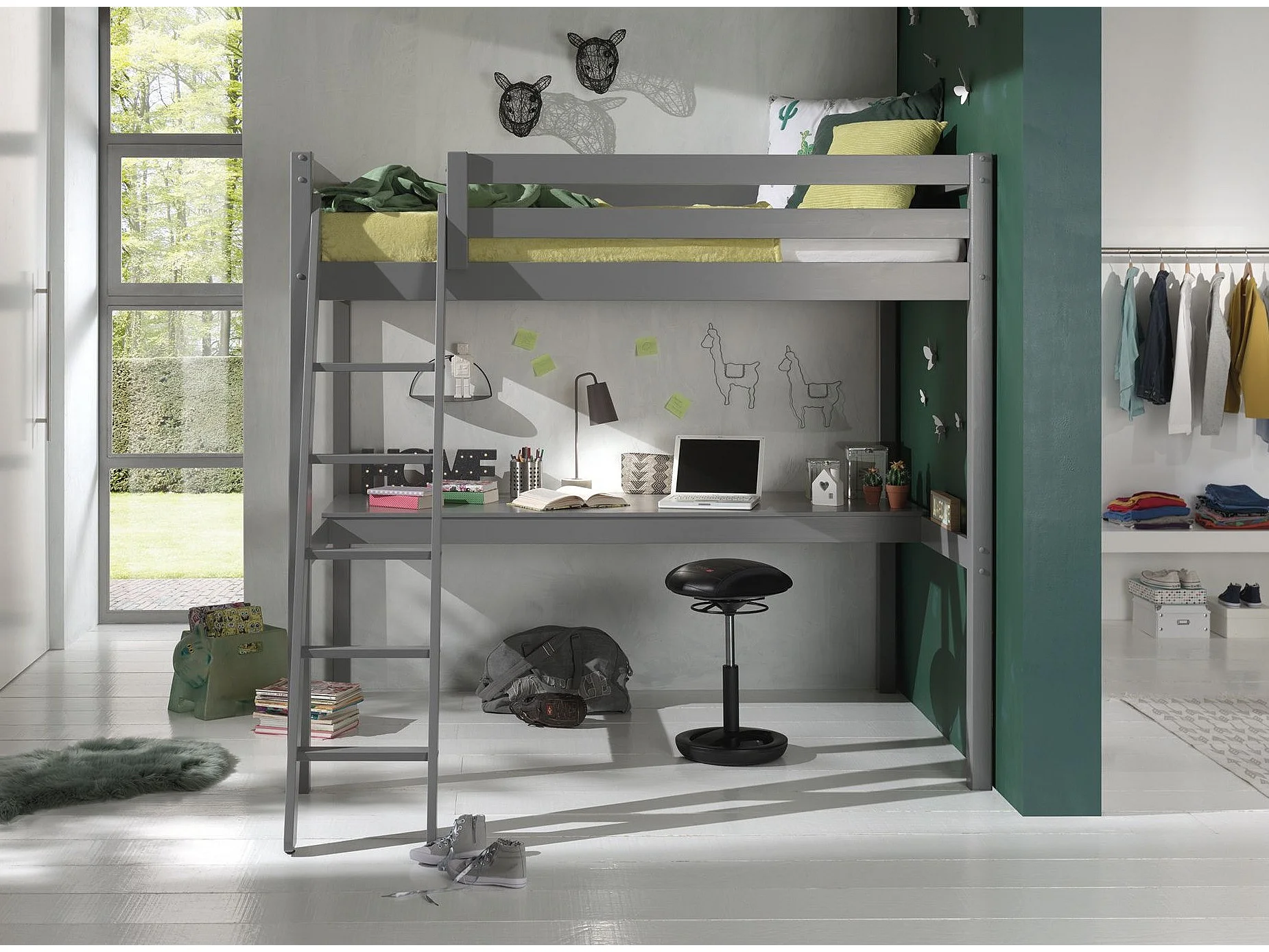 Lit Mezzanine Enfant & Plan de Travail "Pino" 140x200cm Gris