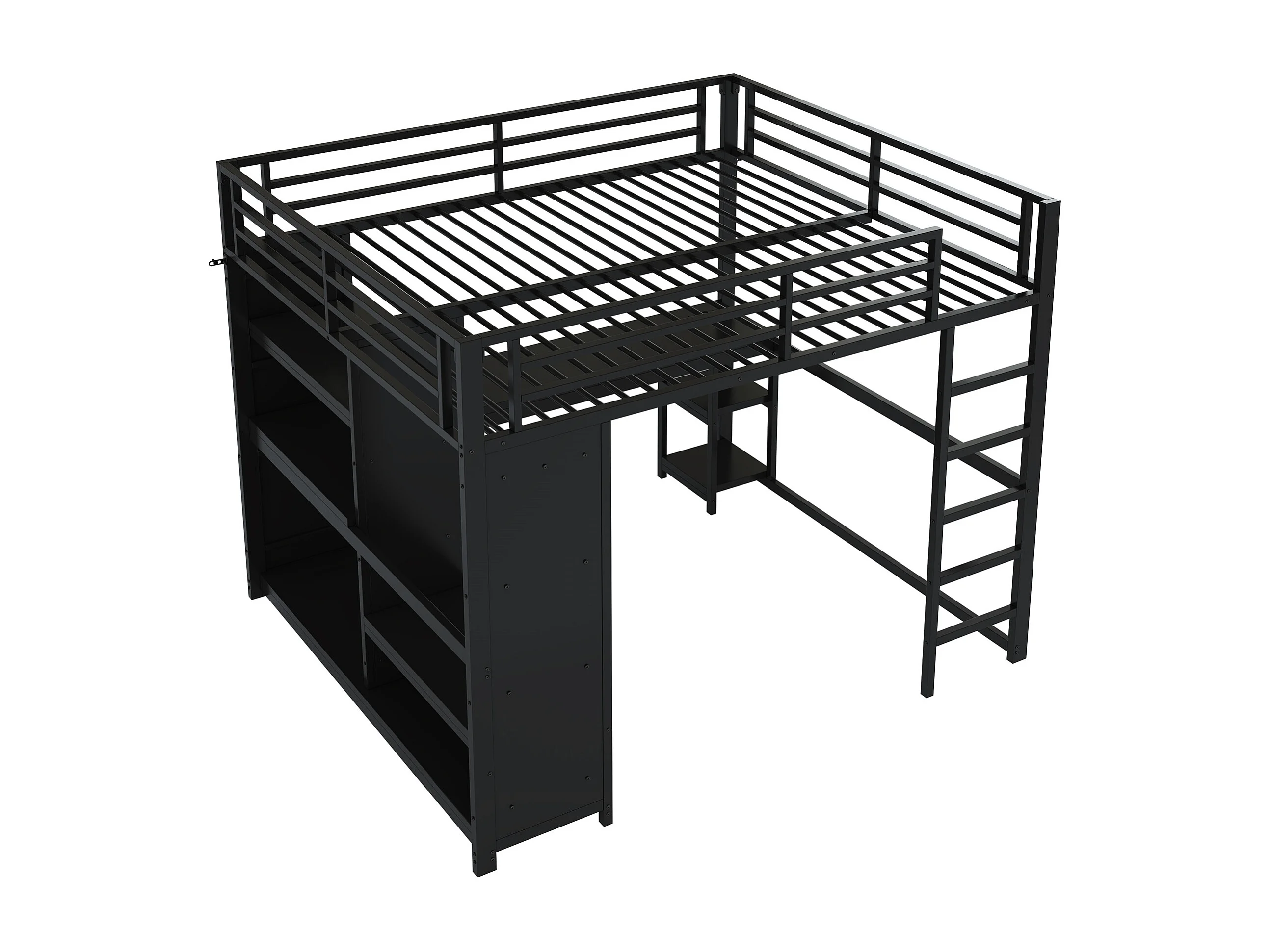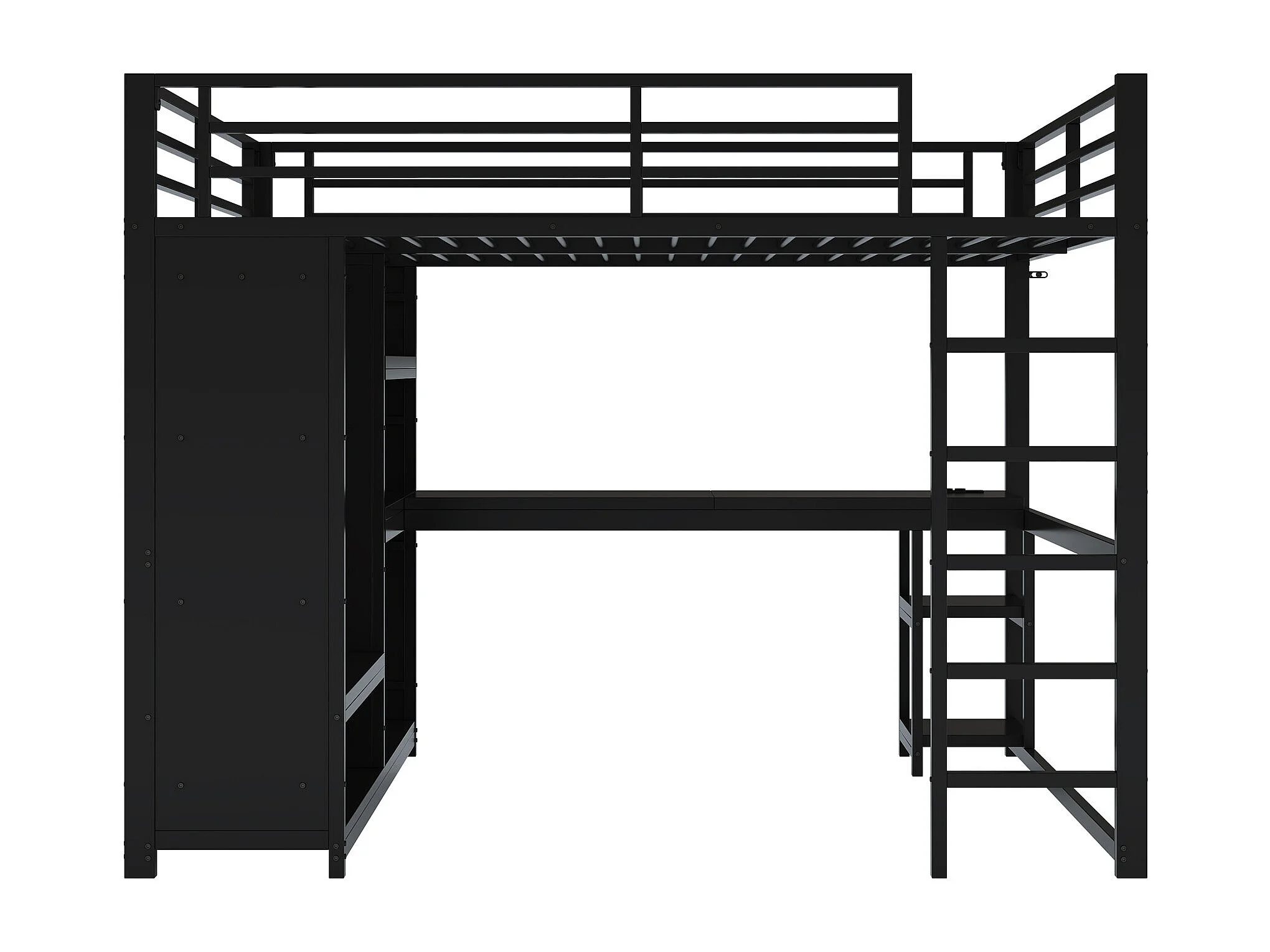 Lit mezzanine 160x200cm - avec LED - avec bureau et armoire ouverte - Métal - Noir(sans matelas)