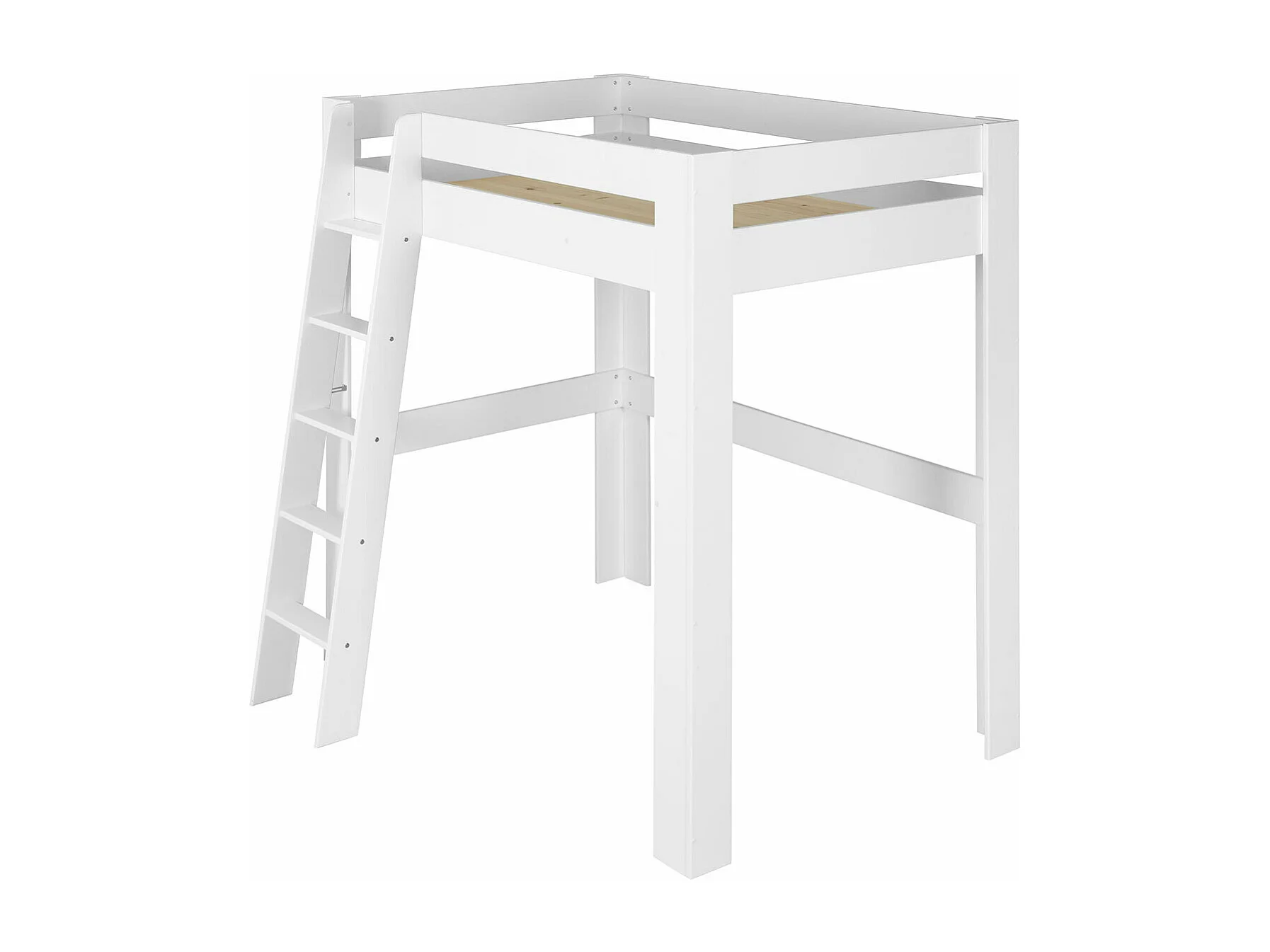 Lit mezzanine 2 places avec bureau 140x190 cm bois massif blanc LEE
