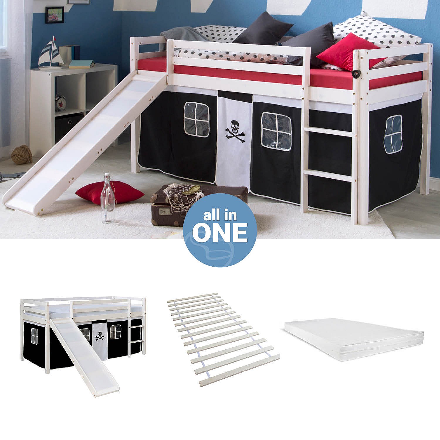 Lit mezzanine 207,5x110x96,5 cm blanc noir Pirate