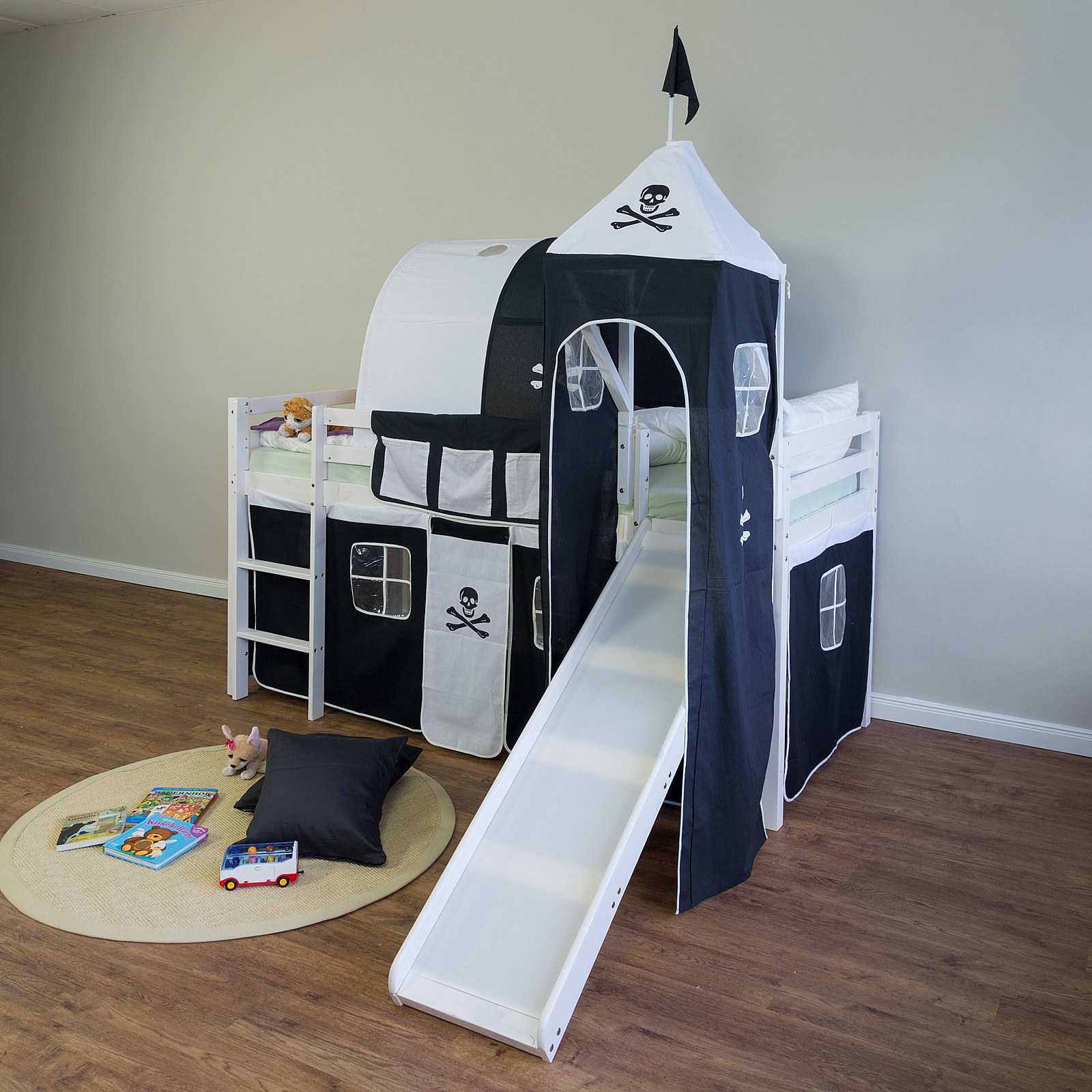 Lit mezzanine 207x150x97 cm blanc noir pirate 1495