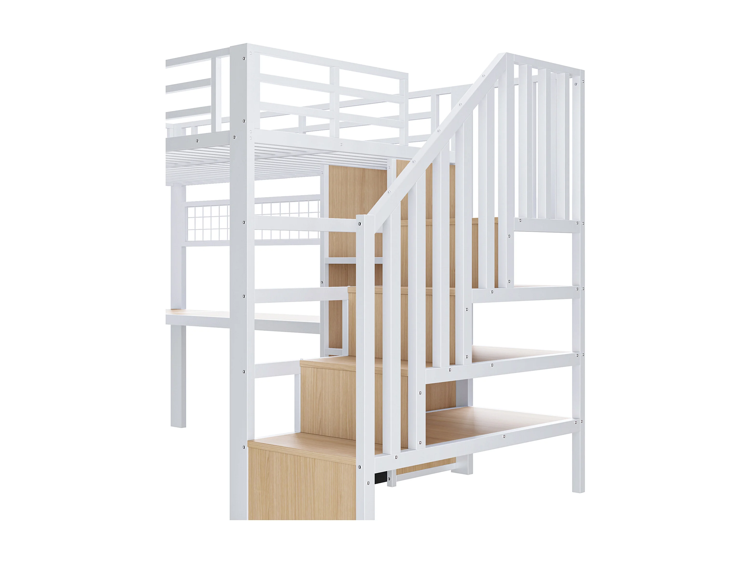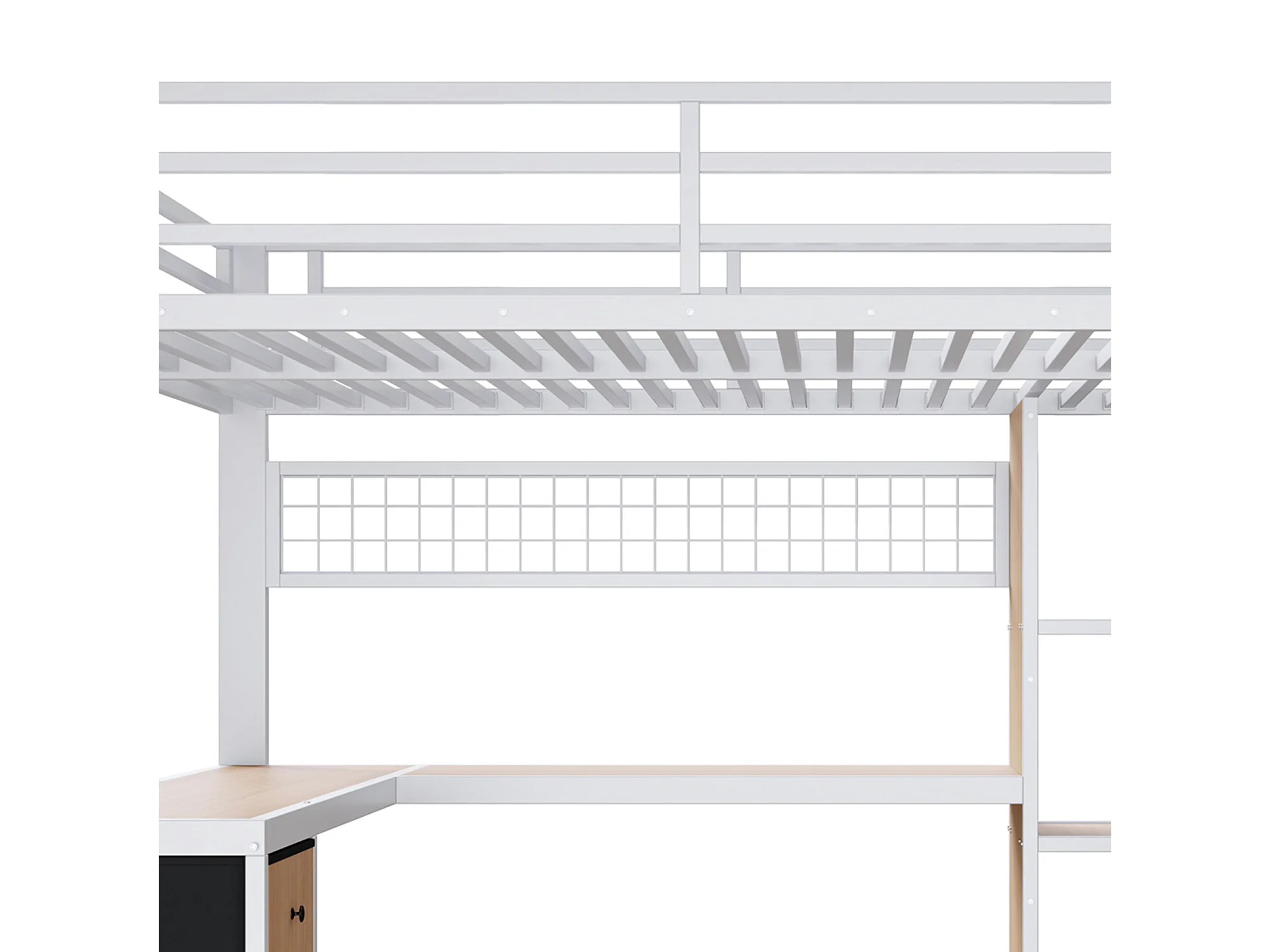 Lit mezzanine 90 x 200 cm avec 4 tiroirs , bureau et LED - Métal blanc