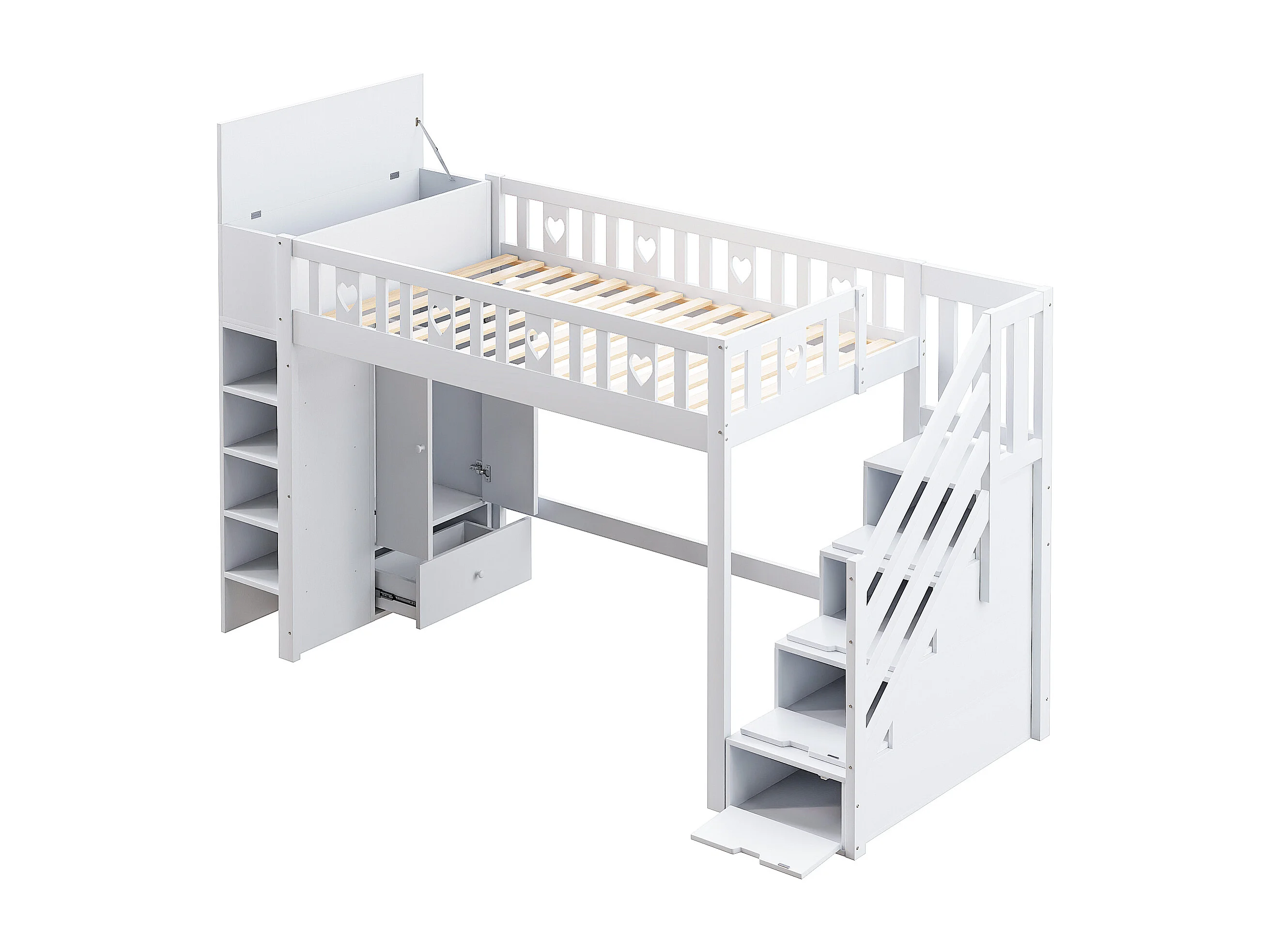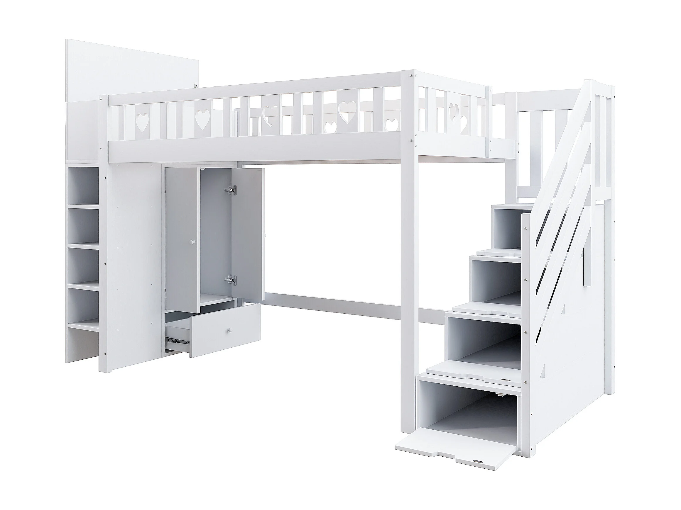 Lit mezzanine 90 x 200 cm avec armoire et rangement - Bois en MDF et pin - Blanc